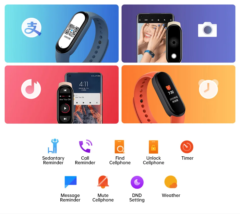 *Функция управления музыкой поддерживает только некоторые основные музыкальные плееры, Функция разблокировки мобильного телефона поддерживается только системой MIUI, функция отключения звука мобильного телефона поддерживается только системой Android, И Удаленная фотография камеры поддерживается только некоторыми основными мобильными телефонами.