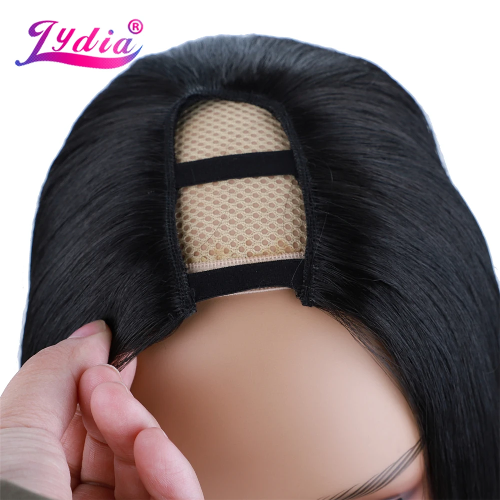 Лидия шелковистый прямой Боб U Часть натуральный черный цвет волос парик Жаростойкие синтетические 12 дюймов для женщин Дамские Парики на каждый день