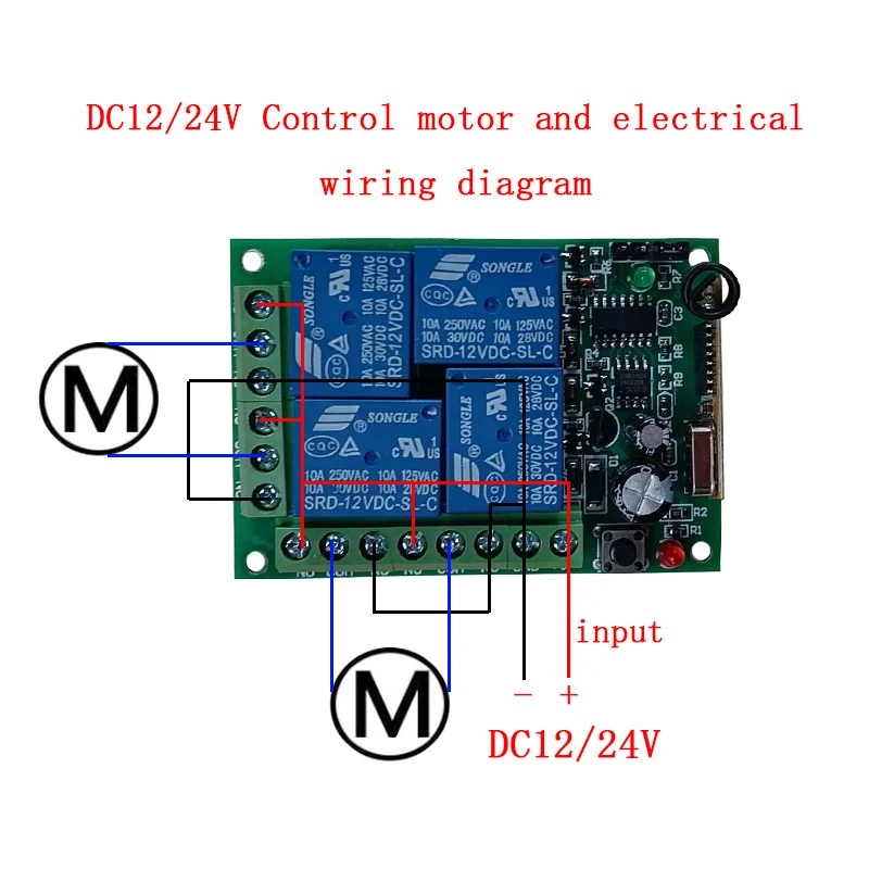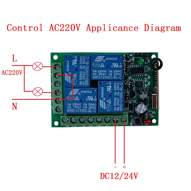 Input DC12V/24V Power for the receiver,press the learning button ,Green LED indicator OFF,Then press transmitter ,the LED indicator flash fast,It mean learning successfully.
