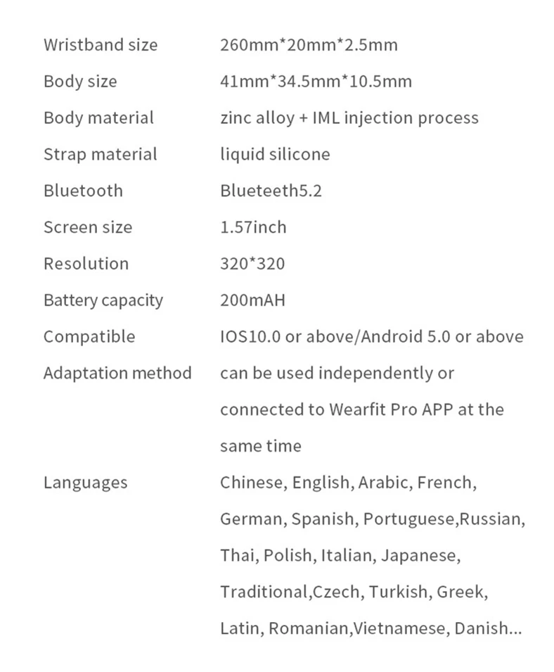 Языки часов: китайский (упрощенный/традиционный), английский, арабский, французский, немецкий, испанский, португальский, русский, тайский, польский, итальянский, японский, чешский, турецкий, греческий, латинский, румынский, вьетнамский, датский.