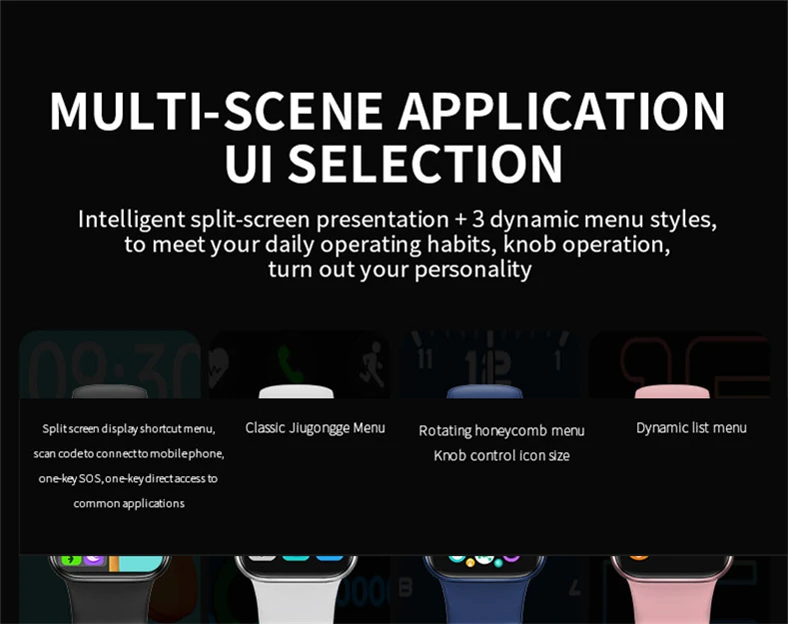 Bluetooth Вызов, воспроизведение музыки, пульт дистанционного управления камерой, уведомления, цифровая корона, сплит-экран, несколько циферблатов часов, 3D динамический циферблат, поворот запястья, будильник, калькулятор, будильник, секундомер, погода, найдите мой браслет