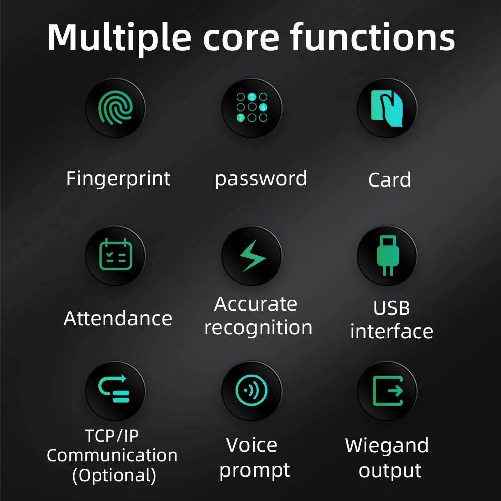 This product High sensitivity,fast recognition speed, accuracy, and less error,Filmless fingerprint collector Using optical filmless fingerprint collector, Support wet and dry fingers, high recognition rate,Various ways of unlocking,Widely used in office buildings, offices residential areas and other places