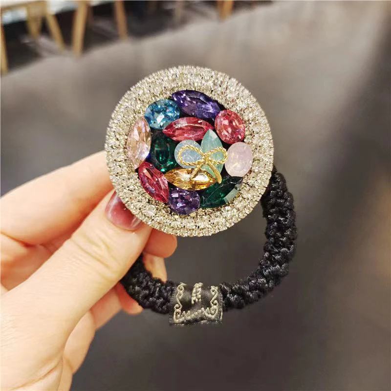 Shiny Crystal Rhinestone Thick Hair Circle Hair Rope Diamond Sweet Head Rope High Elastic Rubber Band Headdress Hair Accessory