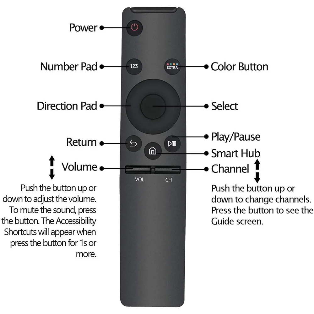 Подходит почти для: универсальный пульт дистанционного управления Smart TV для всех Samsung Smart TV,LED,LCD,HDTV,QLED,SUHD,UHD,HDTV и 3D 4K TV. (Не включая: BN59-01315A BN59-01315B BN59-01315J пульты дистанционного управления)
