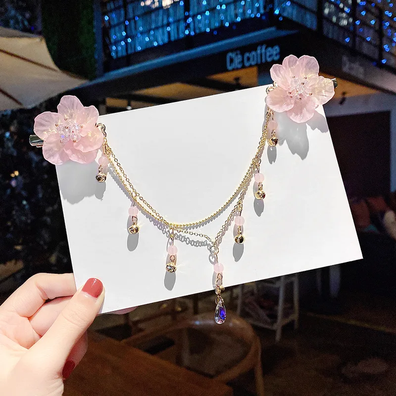 Заколка для волос в китайском стиле с цветами для девочек, Длинные заколки для волос в стиле ретро, аксессуары для волос Hanfu, заколки с кисточками на лбу, головной убор