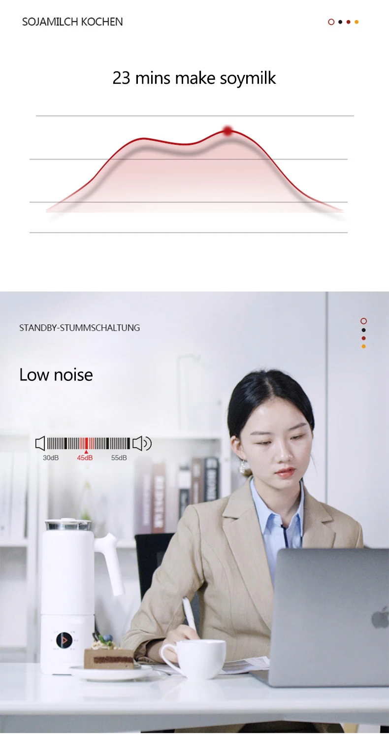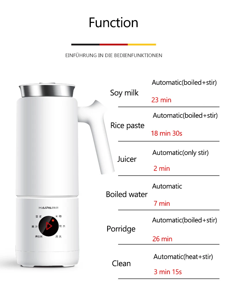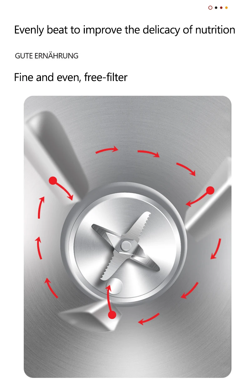 Feature 1: mini portable,split stype Feature 2: heatable Feature 3: Multifunction Feature 4: free-filter Feature 5: 6 stainless steel blade Feature 6: one button cleaning