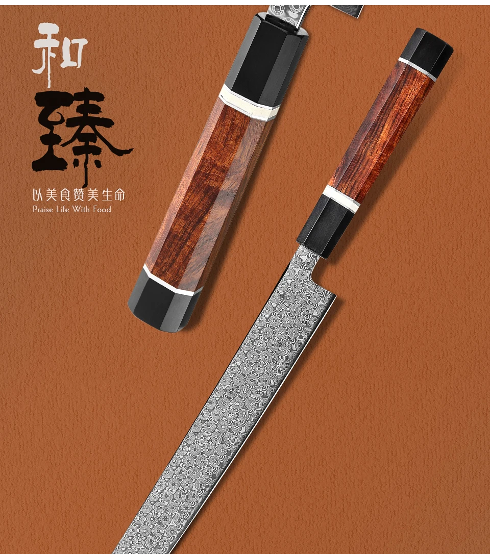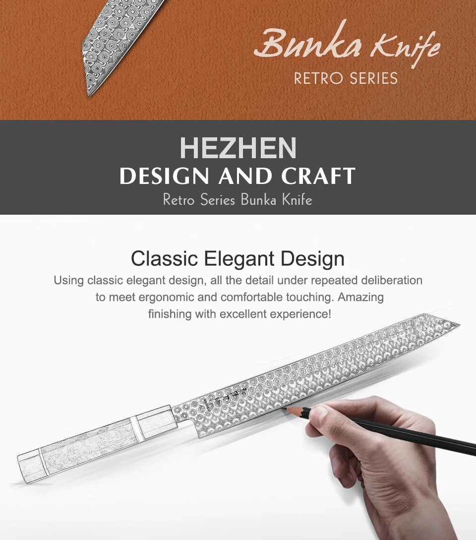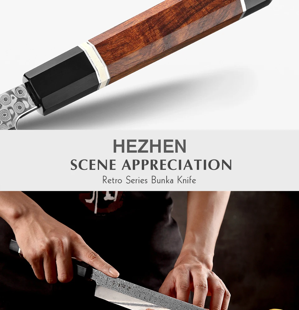HEZHEN Ретро серии Дамасская сталь 270 мм нож Bunka
