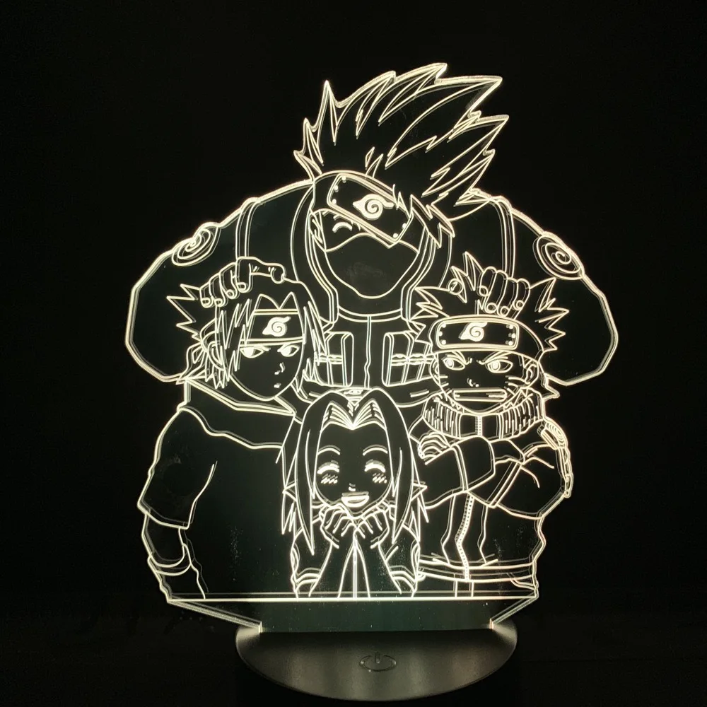 Наруто 3D ночной светильник светодиодный светильник Uzumaki Наруто Lampara Hatake Kakashi Haruno Sakura Uchiha Sasuke Manga Настольный светильник s домашний декор yh