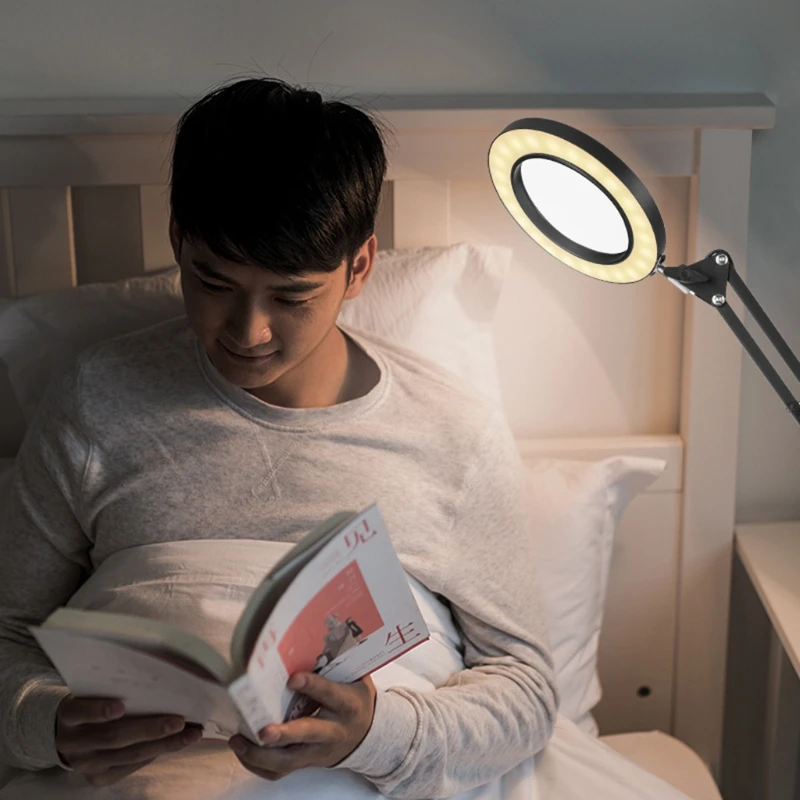 【Стабильный металлический колпачок изготовлен из высококлассного утолщенного материала и изготовлен из утолщенной пружины и специальной защитной прокладки, он может прочно держаться на столе, кровати или мебельной кромке, экономя пространство и предлагая лупу и светильник без рук, И без повреждения контактной поверхности.