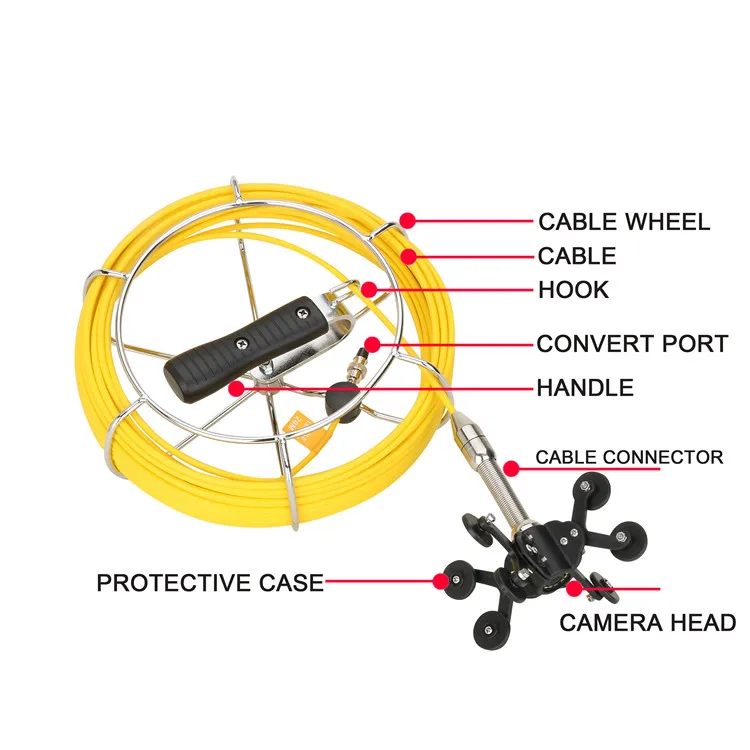 Профессиональная камера для проверки дренажных труб/канализационных трубопроводов разработана с 7-дюймовым цветным ЖК-монитором TFT с солнцезащитным козырьком для наружных осмотров. Материал проволоки-стержень из стекловолокна (диаметр: 4,9 мм), антикоррозийный/холодный/растягивающийся.