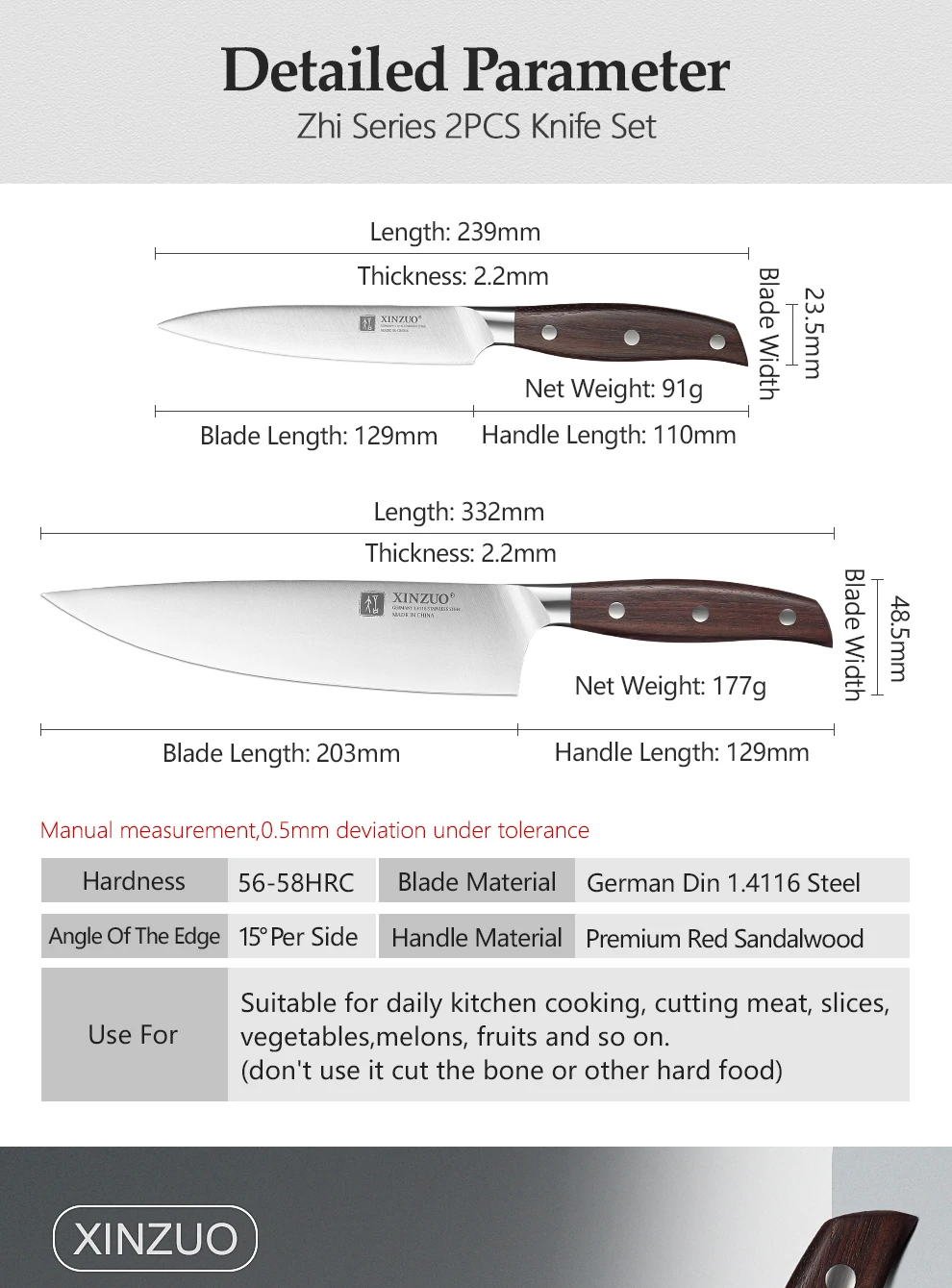 Набор ножей из нержавеющей стали серии XINZUO Zhi 2 шт.