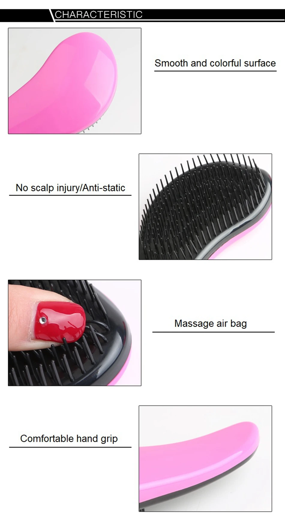 TT Hair Comb Detangling Hair Brush Haircare Anti-static Brush Tangle Wet Dry Handle Tangle Curly