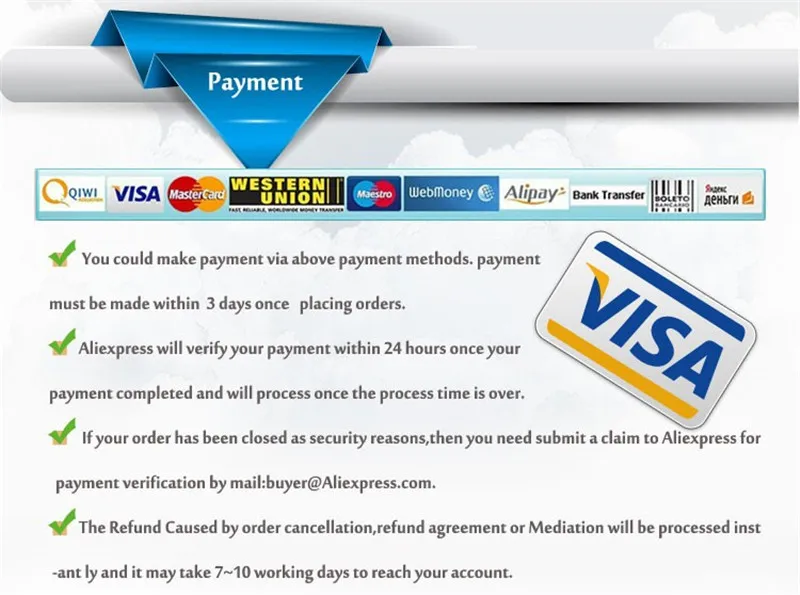 1) Мы отправим товар по умолчанию, если вы не сообщите нам об этом. Пожалуйста, убедитесь, что ваш адрес доставки верен.