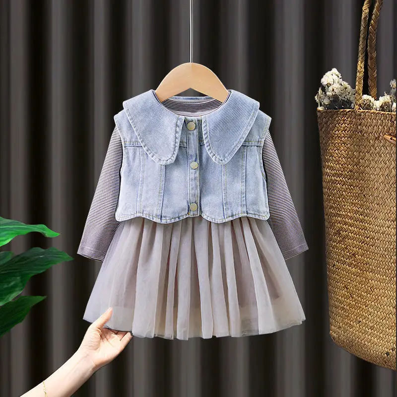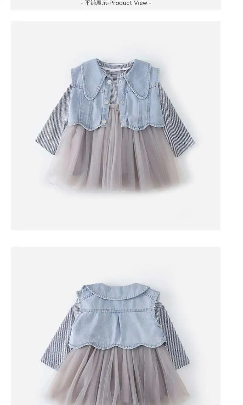 2 шт./компл. 2021 весна и осень одежда для девочек комплекты повседневной одежды джинсовый жилет + платье костюм для новорожденных девочек одежда