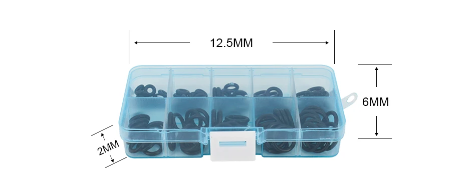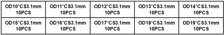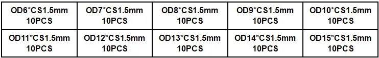 Вы получите коробку, содержащую следующие десять размеров, 10 каждого размера, в общей сложности 100 уплотнительных колец.