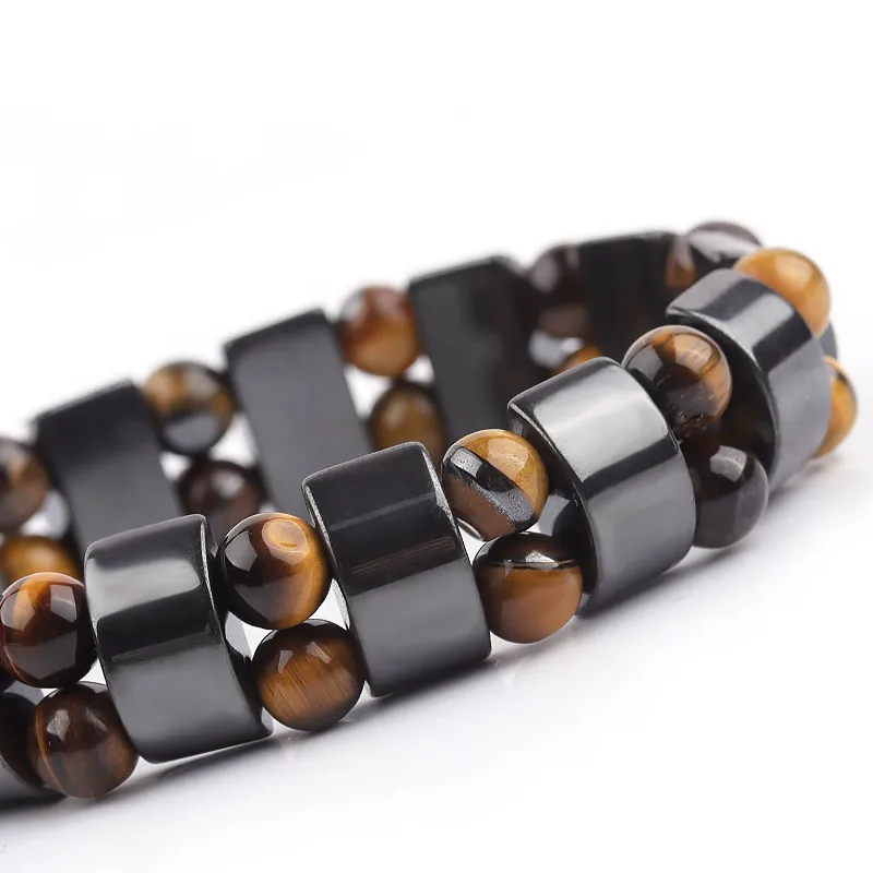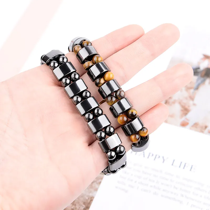Природа желтый тигровый глаз Гематит бусы браслет терапия Здоровье Уход гематитовый магнит мужские ювелирные изделия Шарм Браслеты Подарки для мужчин