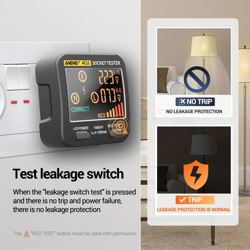ЕС разъем AC11 RCD NCV Тестер электрический детектор утечки розетка проверки заземления провода нулевой линии живого провода фазовый искатель
