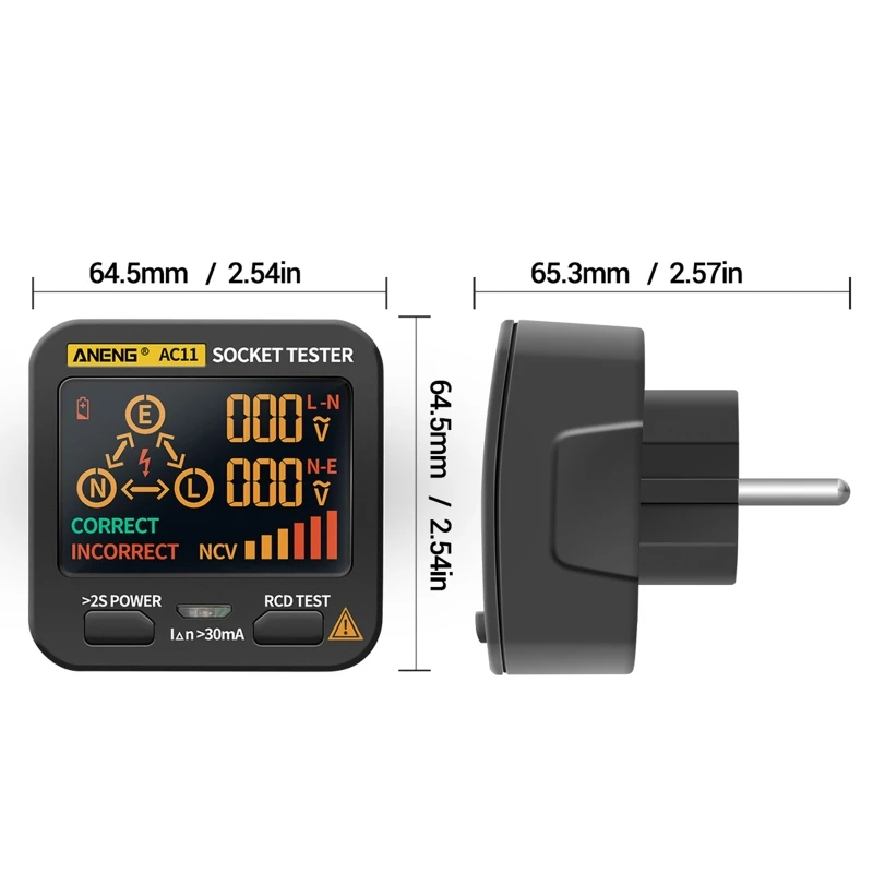 Умный тестер розеток AC11 в основном используется для обнаружения полярности розетки и безопасности выключателя утечки, который может быстро и точно обнаруживать проводку розетки. В то же время напряжение розетки может быть Протестировано и отображено на светодиодный экран ЖК-дисплея.
