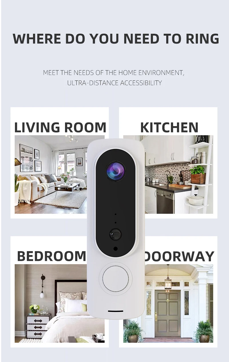 Встроенный датчик человеческого тела (PIR), восприятие динамики передней двери в реальном времени, когда кто-то появляется за дверью, первый раз записывает видео, вы можете воспроизвести историю в любое время через приложение.
