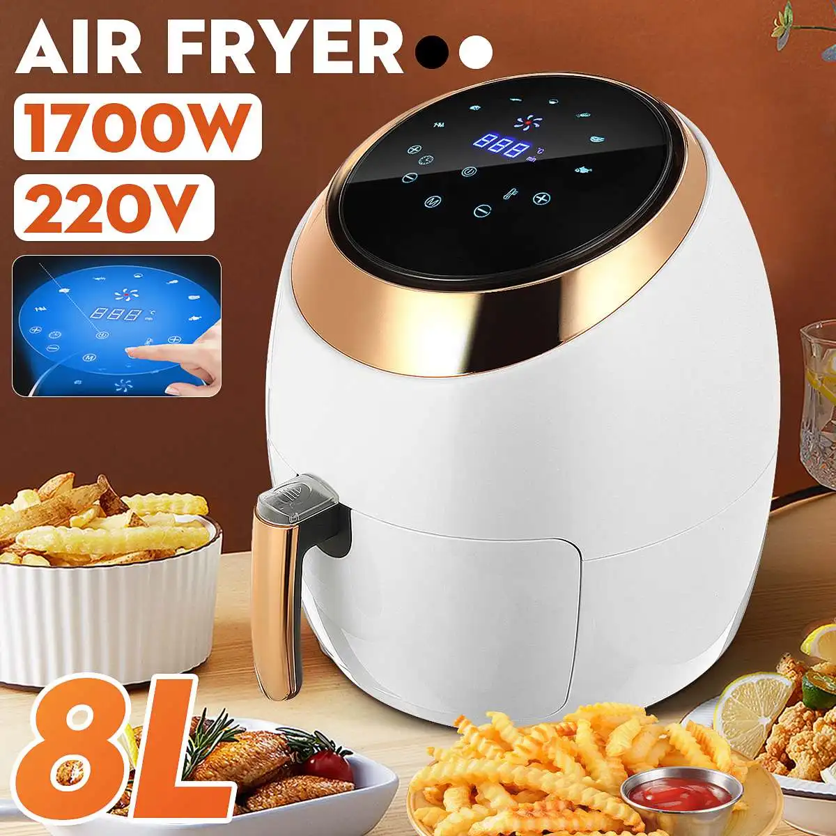Название: 220V 1700W 8L воздуха фритюрница с двумя решетками