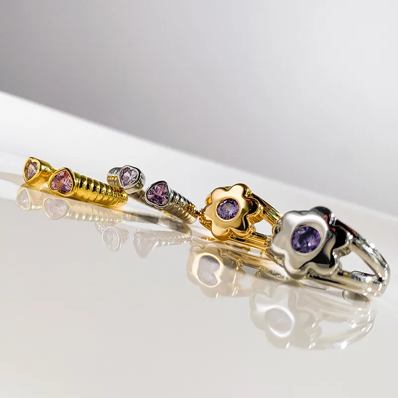 Модные золотые, серебряные, фиолетовые, циркониевые, открытые кольца для женщин, девушек, металлические, цветочные, для свадьбы, праздничная бижутерия с кольцами