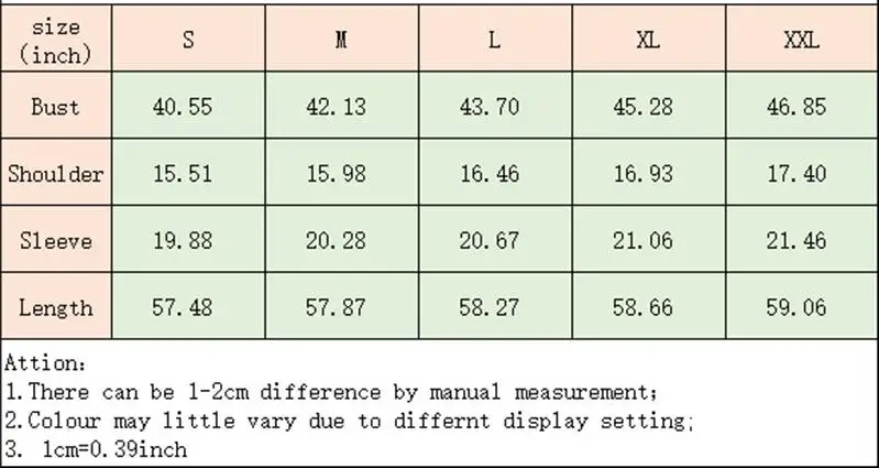 1. Измеряется вручную, может быть 2 см ~ 3 см отличается. Пожалуйста, обратите внимание при измерении. 1 см = 0,3937 дюйма.