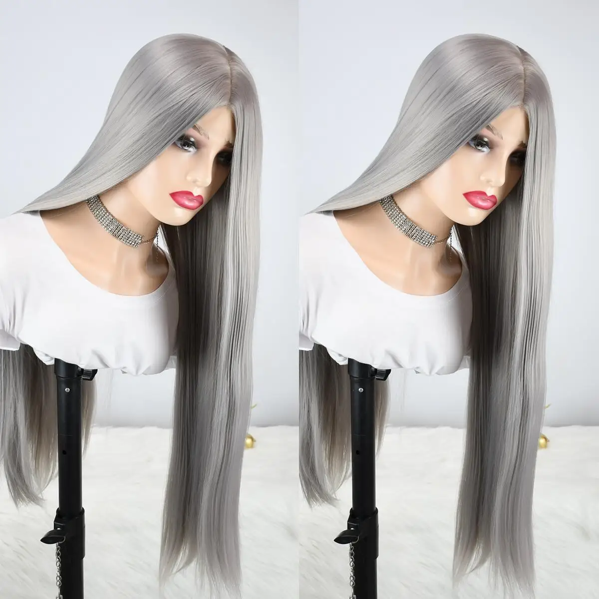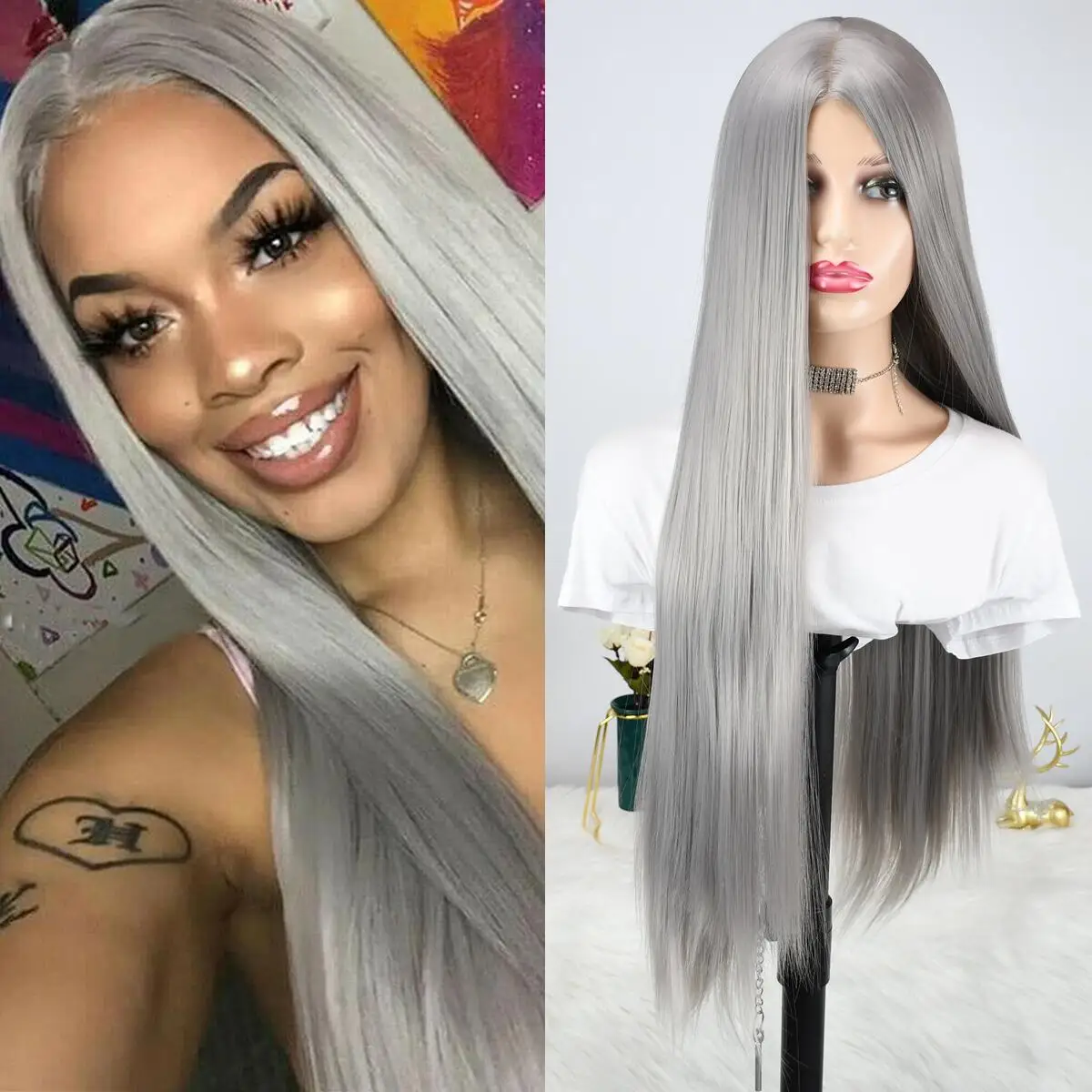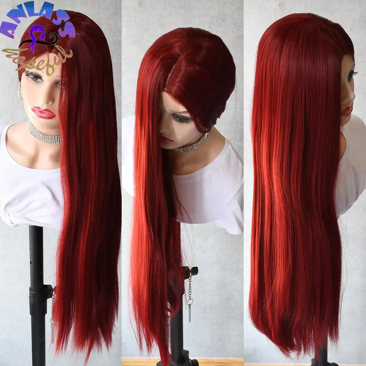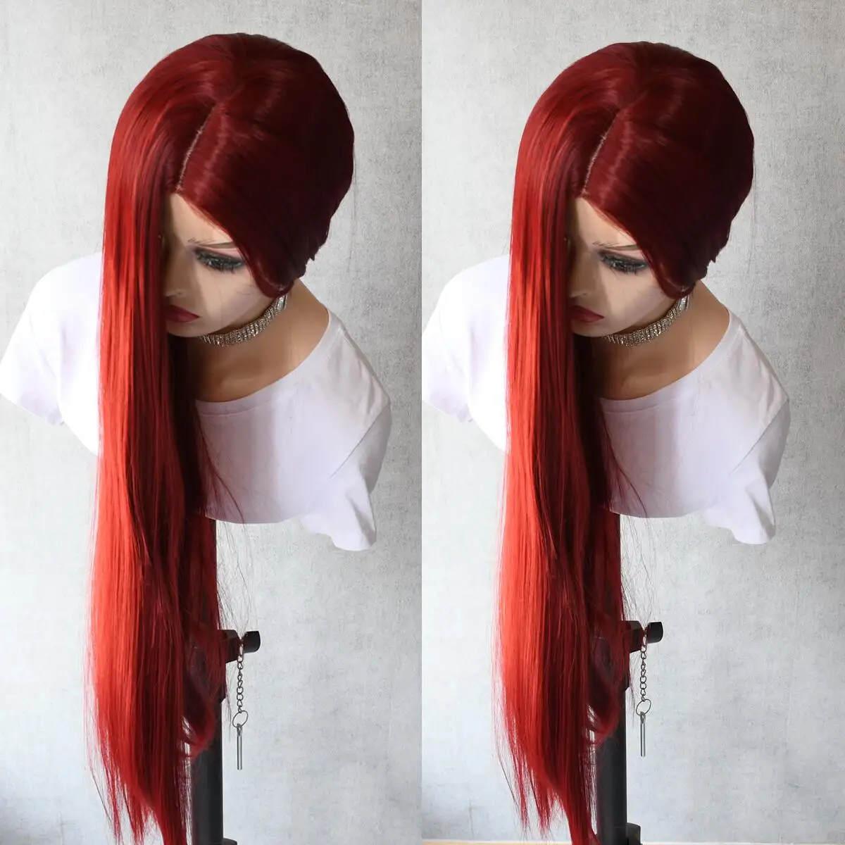 Длинный прямой винно-красный парик из синтетических волос термостойкий парик натуральный косплей парик для женщин средняя часть серый синий парик