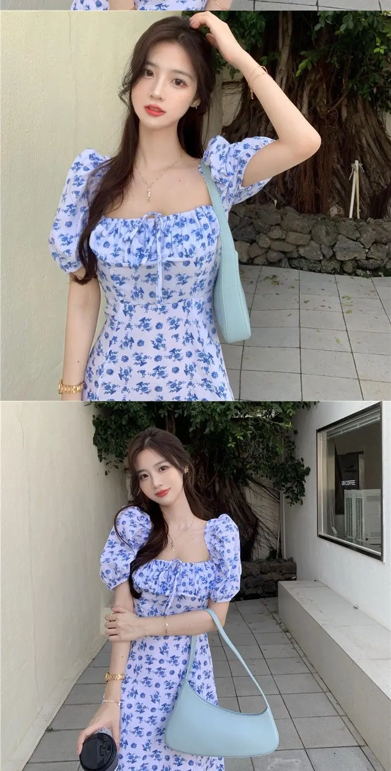 Платье женское в стиле Харадзюку Тонкий Повседневный Сарафан с пышными рукавами