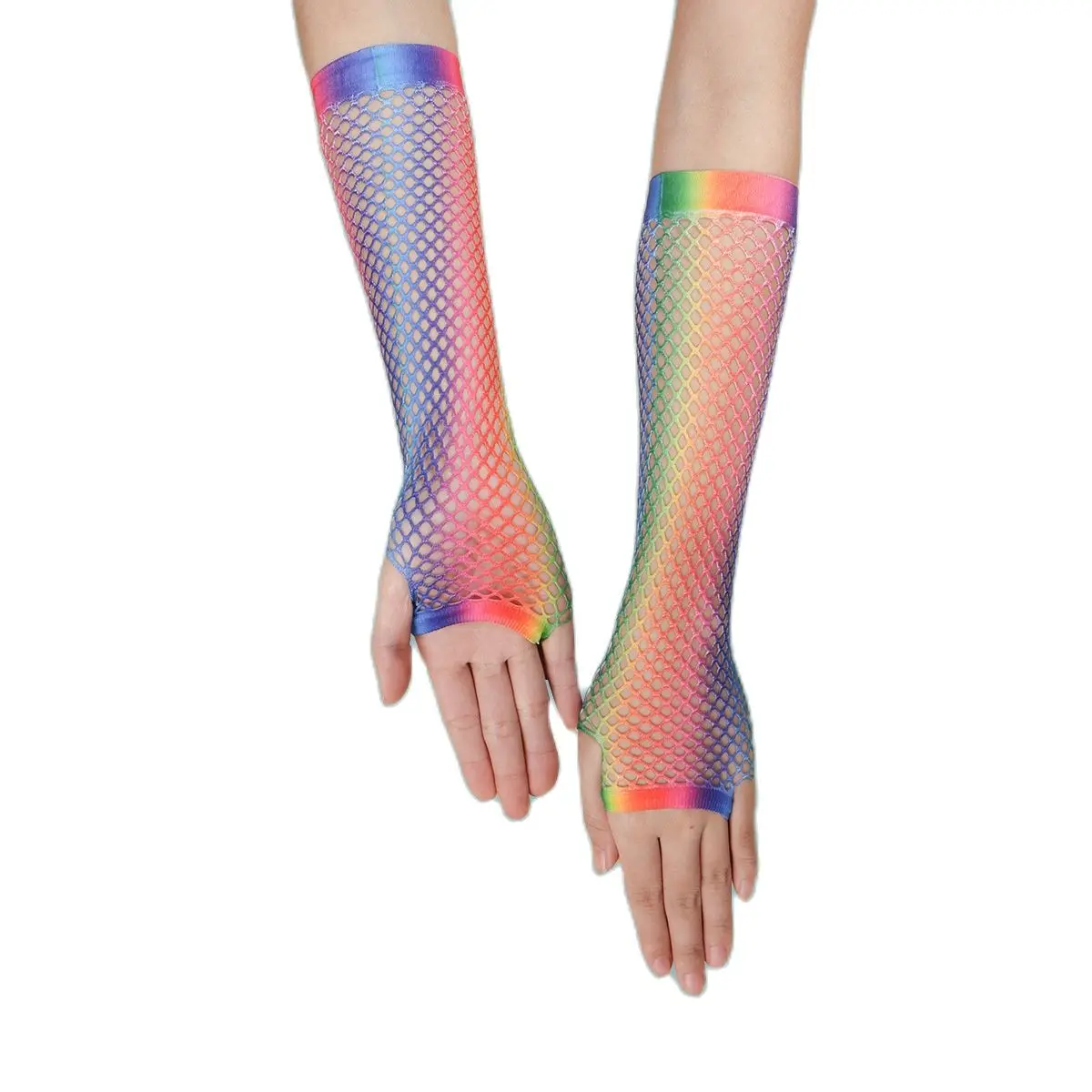 2Pairs/Lot Punk Lady Disco Dance Costume Lace Fishnet Fingerless Long Gloves Ins Unisex Fancy Mesh Gloves Sexy Arm AccessoriesMATERIAL: 100% POLYESTER