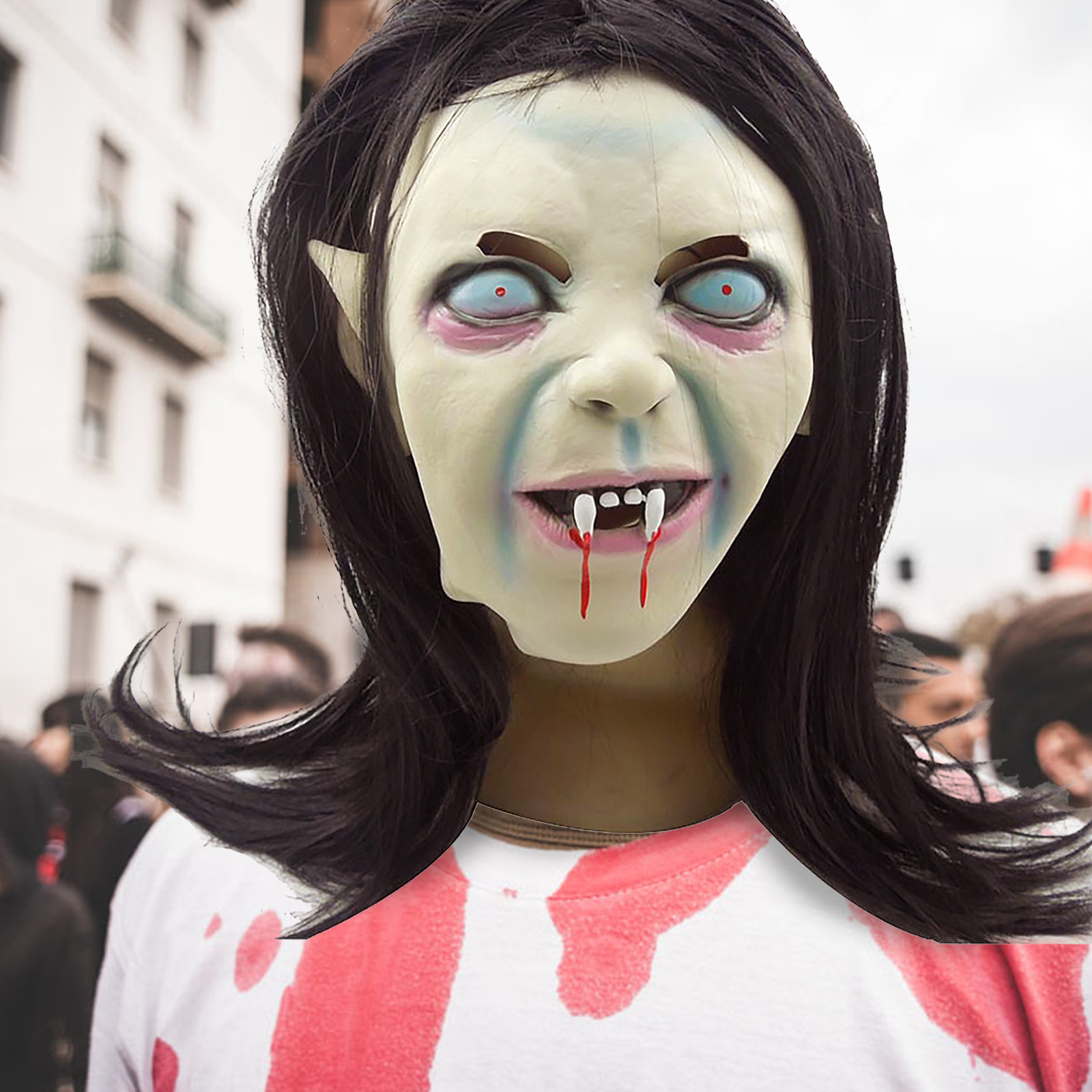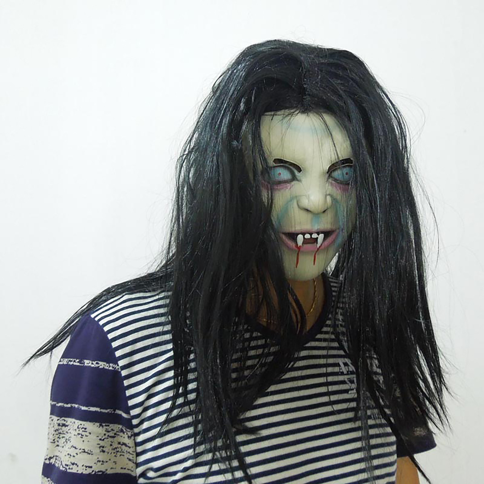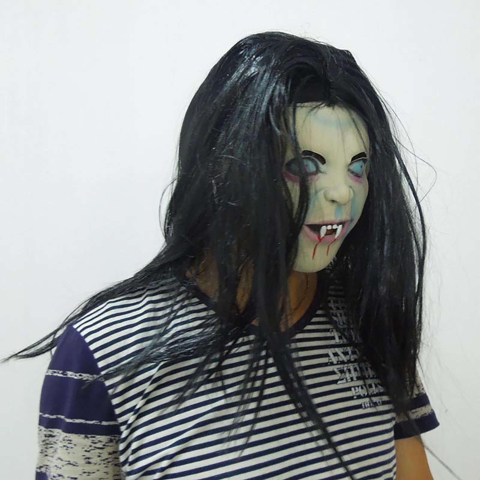 Хэллоуин ужас гримаса Призрак Маска Жуткий черный длинный парик маска вечерние маска ужаса