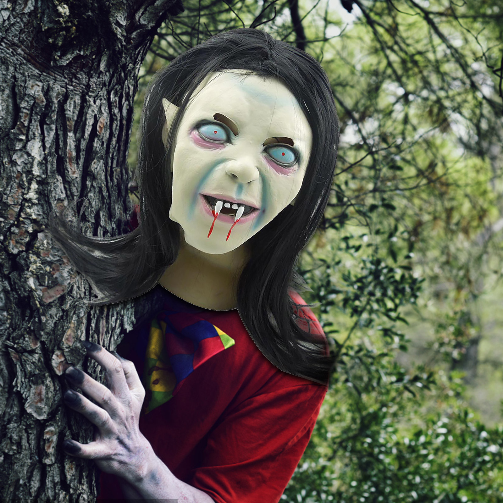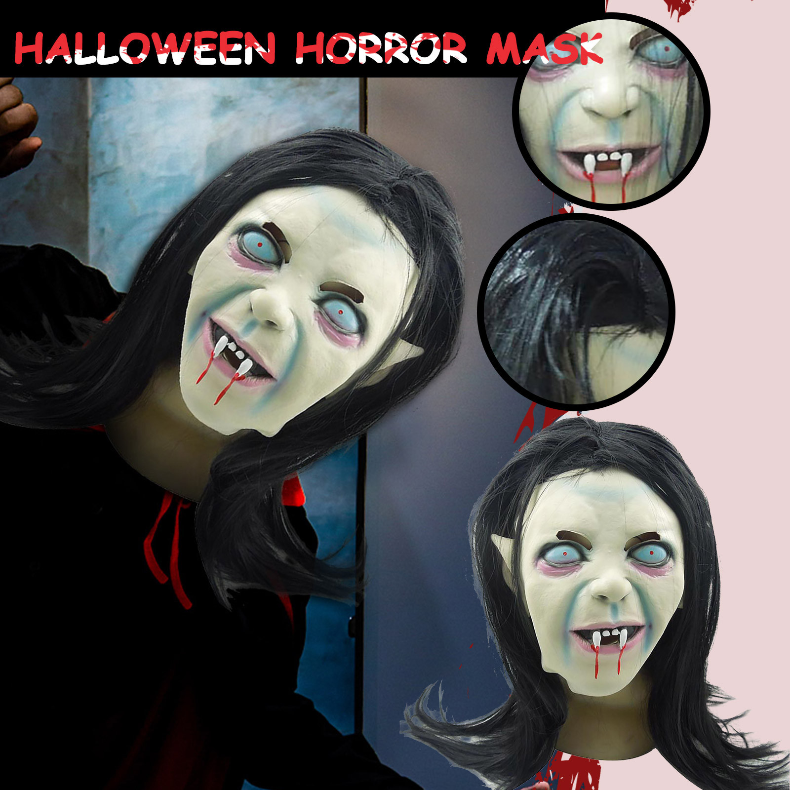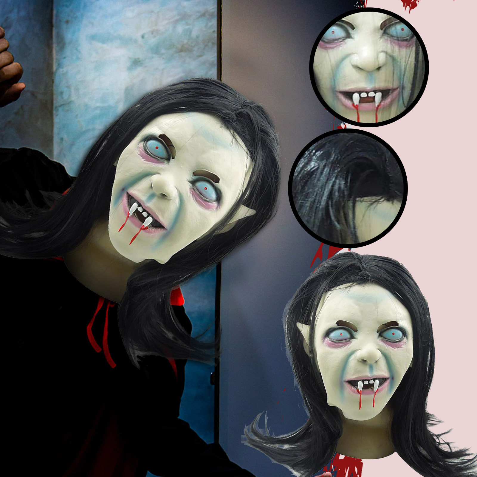 Хэллоуин ужас гримаса Призрак Маска Жуткий черный длинный парик маска вечерние маска ужаса