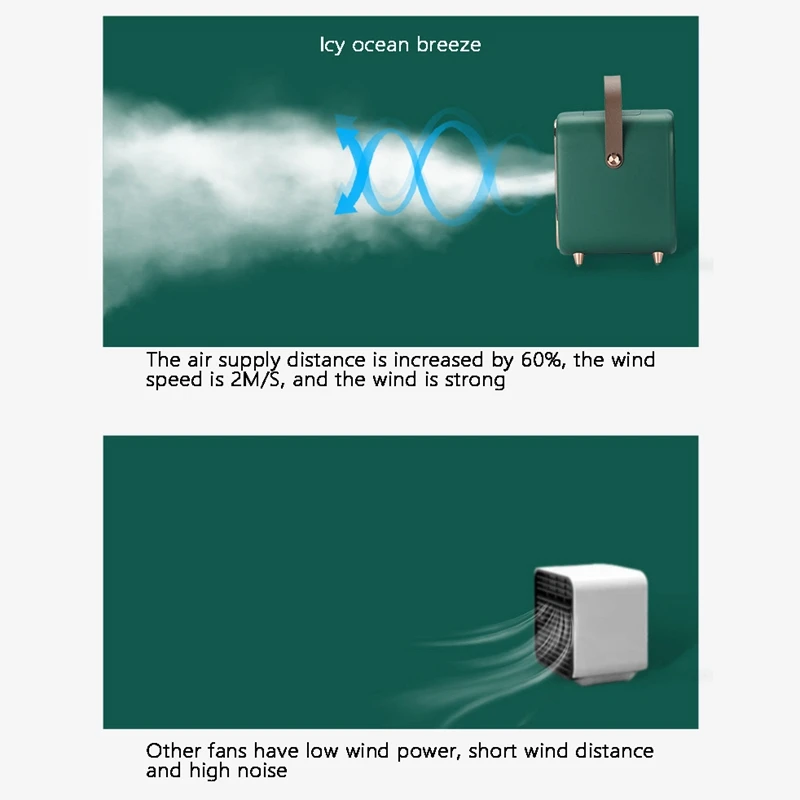 [Светильник с весовым дизайном] охладитель воздуха принимает мини-портативный дизайн, который является светильник и легко носить с собой. Это занимает всего несколько секунд, чтобы охладить горячий воздух вокруг вас, подходит для комнат, офисов, автомобилей, кемпинга и т. д. низкое энергопотребление подходит для нашего низкоуглеродного образа жизни.