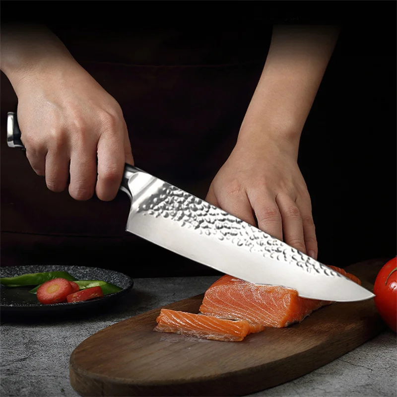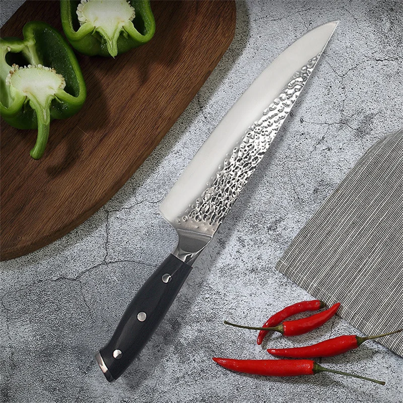 Кривая лезвия ножа гладкая для легкой точной резки. Отлично подходит для измельчения, измельчения и нарезки фруктов, мяса, рыбы и овощей на кухне из-за отличного качества. Его также можно использовать для резки хлеба на обеденные столы из-за прекрасного внешнего вида.
