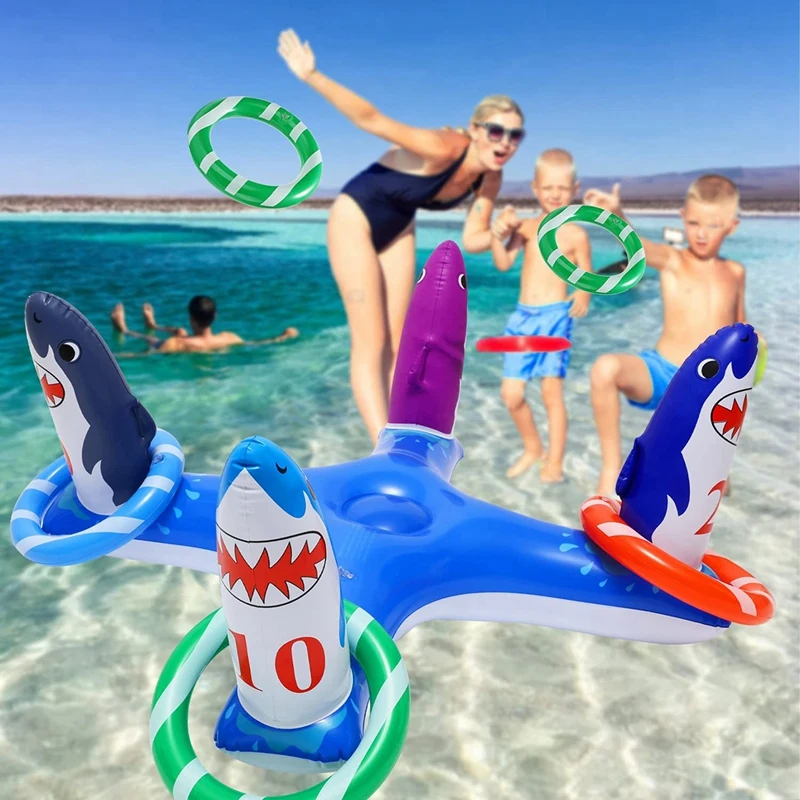 Надувное кольцо для бассейна Акула игрушки игр плавающее с 6 кольцами аксессуары