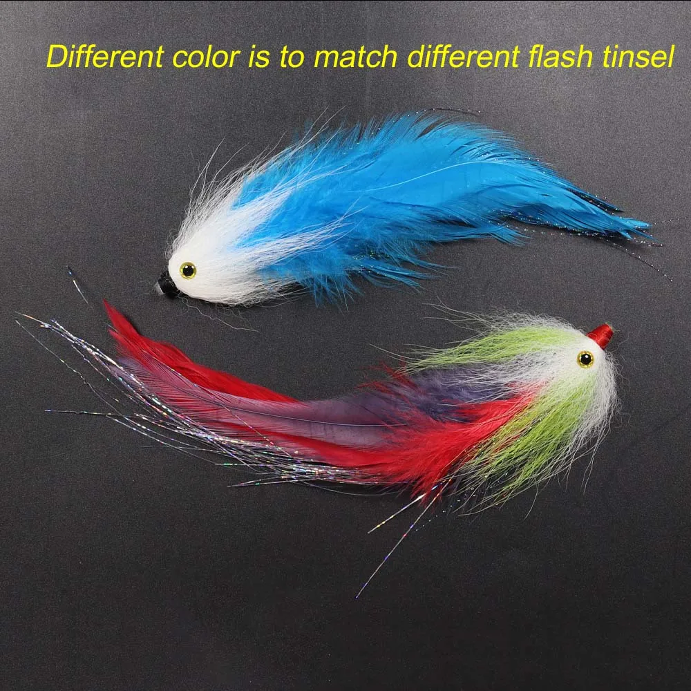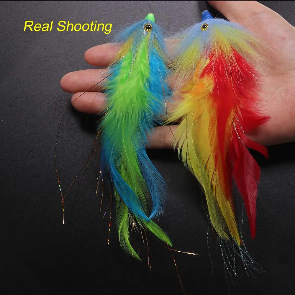ICERIO 2 шт. 3D рыбий глаз красочные светящиеся лисицы хвост трубка Стример Летать без крючка петух хакле соленой воды Щука бас рыболовная приманка