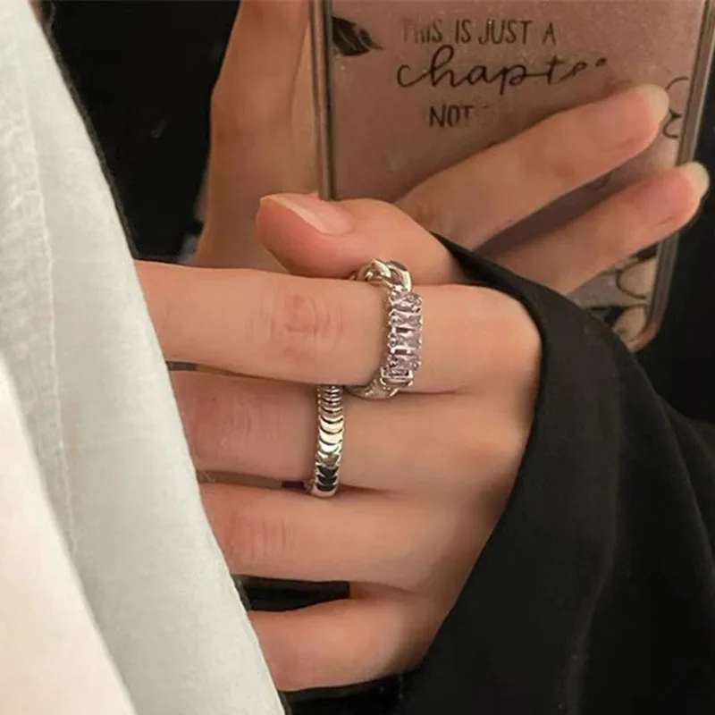 Женское кольцо-цепочка с фиолетовым цирконием, Ювелирное Украшение для вечерние модного серебристого цвета, свадебные кольца на палец