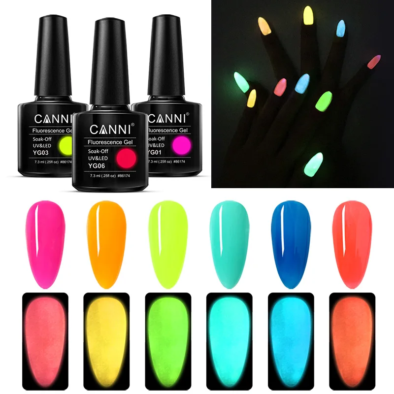 CANNI 2021 Новое поступление 7,3 мл 6 видов цветов флуоресцентный Гель-лак YG01-YG06 светящийся неоновый гель длительного действия для ногтей