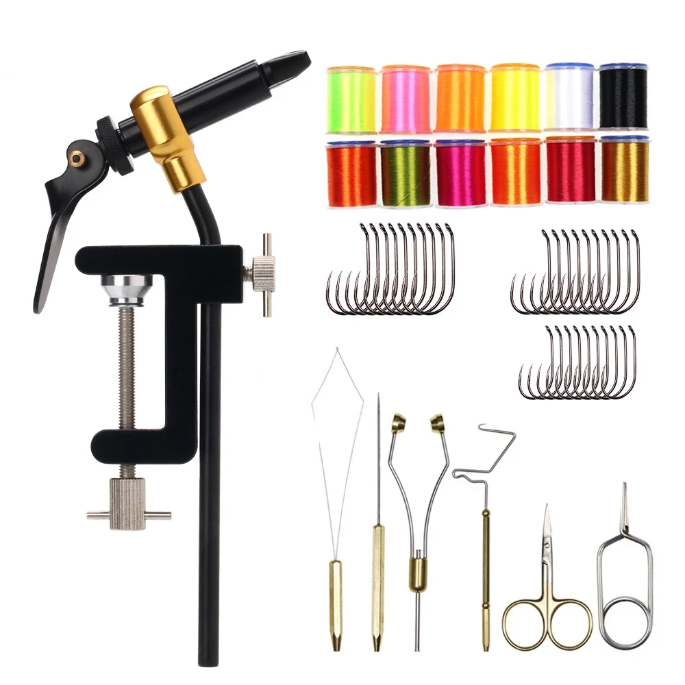 ICERIO Fly Tying Tool-Fly Tying Vise/Bobbin Holders/Threader/Scissors/70D Fly Tying Thread Barbless Czech Hook Tie Fishing Lures