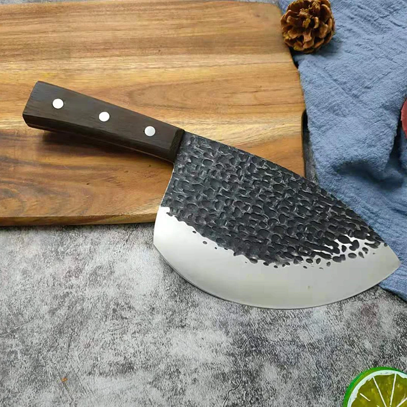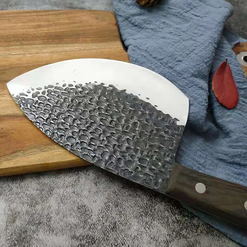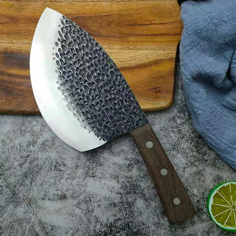 Нож изготовлен из нержавеющей стали 5Cr15, традиционная технология ручной работы кованого ремесленника, влажная режущая кромка делает лезвие острым и долговечным, приятный стиль позволит Вашему приготовлению пищи приятным.