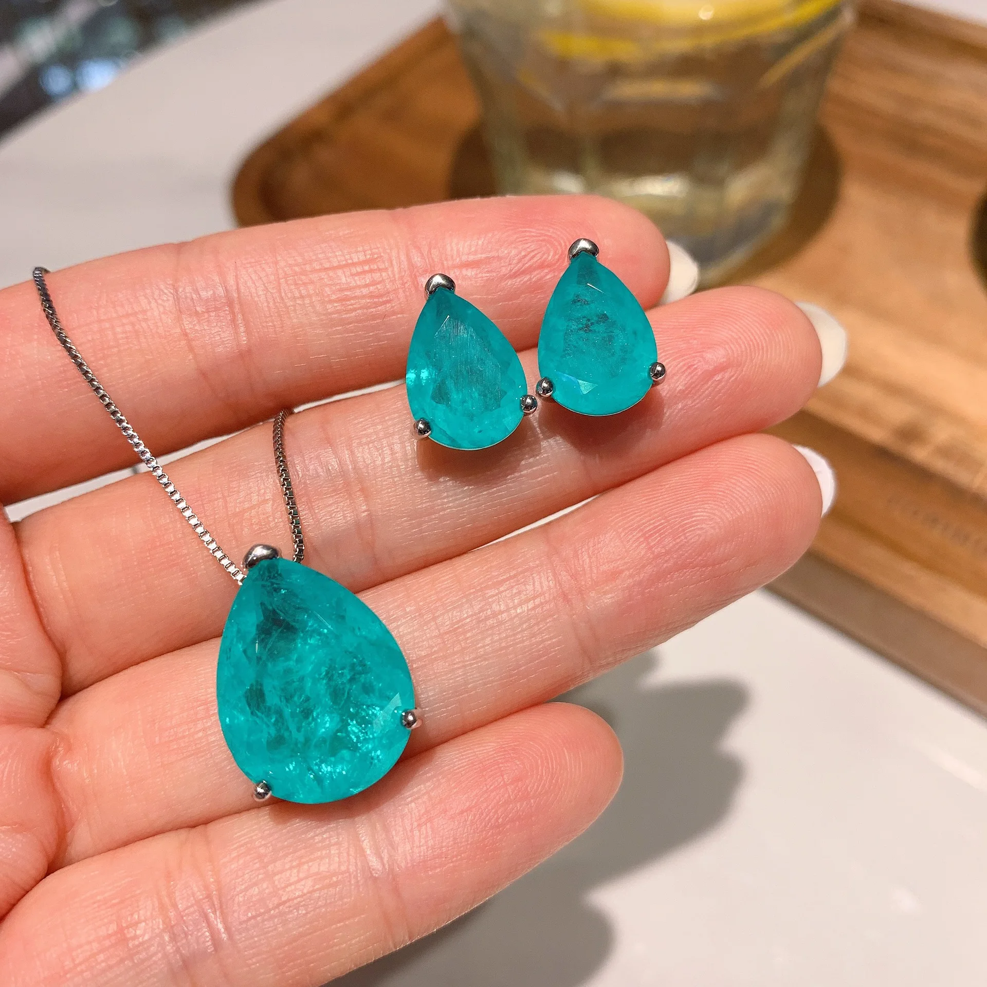 Green Emerald 925 Sterling Silver Jewelry set for Women Wedding Party Bracelet Earrings Necklace pendant Ring Birthday Gift | Украшения и