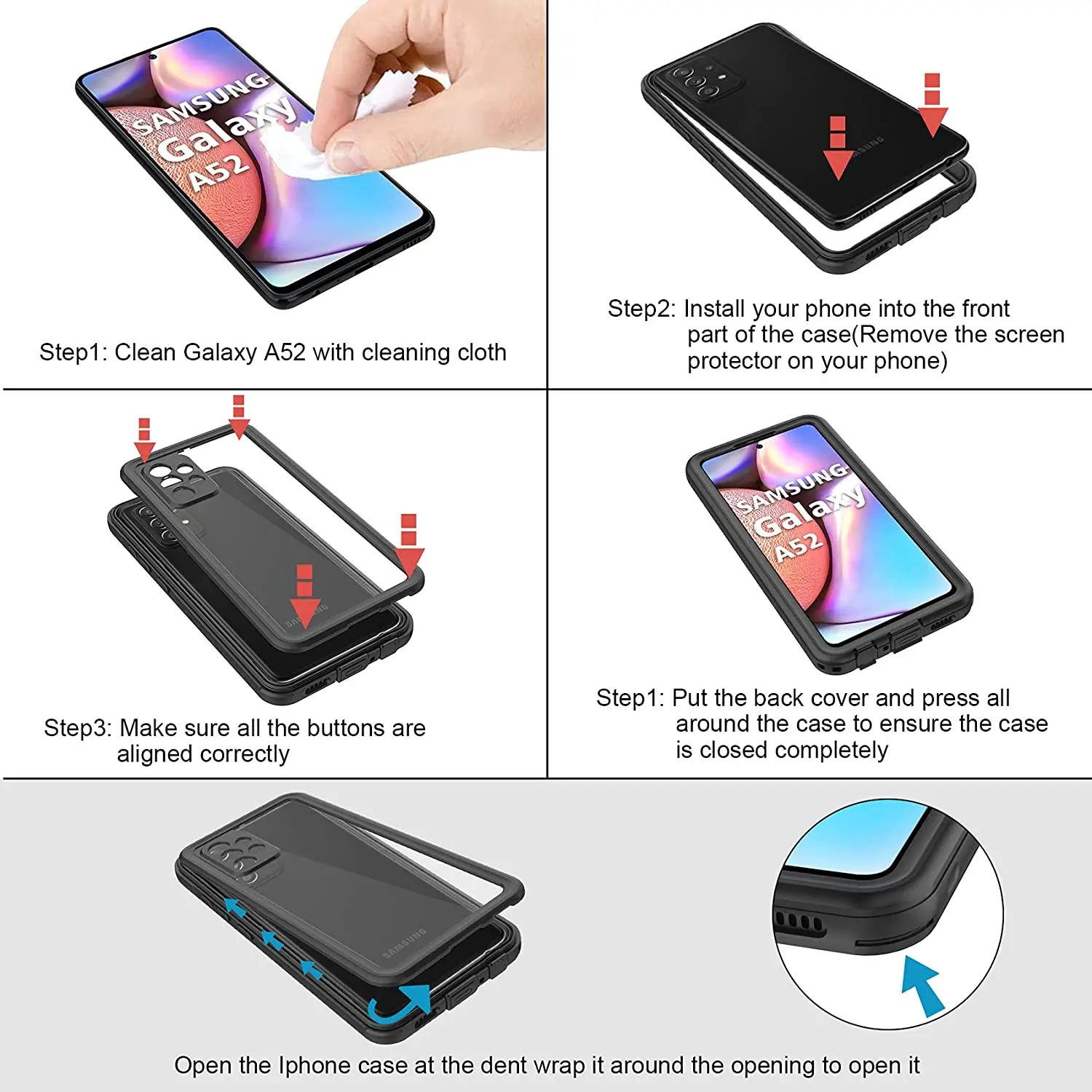 2. Встроенная защитная пленка для экрана устойчива к царапинам, поэтому не выровняйте Дополнительное защитное стекло для экрана, это поставит под угрозу сенсорную чувствительность и запретит закрывать чехол полностью. И пожалуйста, снимите любую защитную пленку внутри и снаружи экрана чехла.