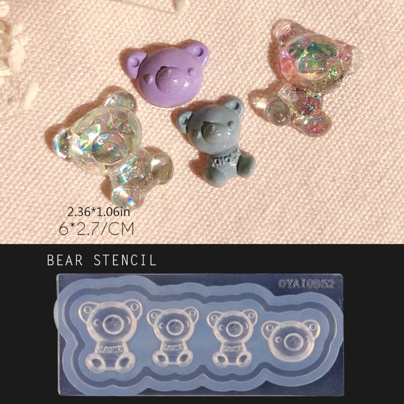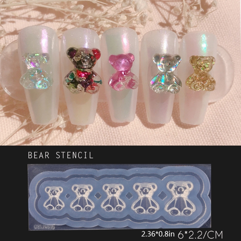 L93E Crystal Epoxy Resin Mold Nail Carving 3D Bear Silicone Mould DIY Crafts Stamping Plate Nails Stencils Manicure