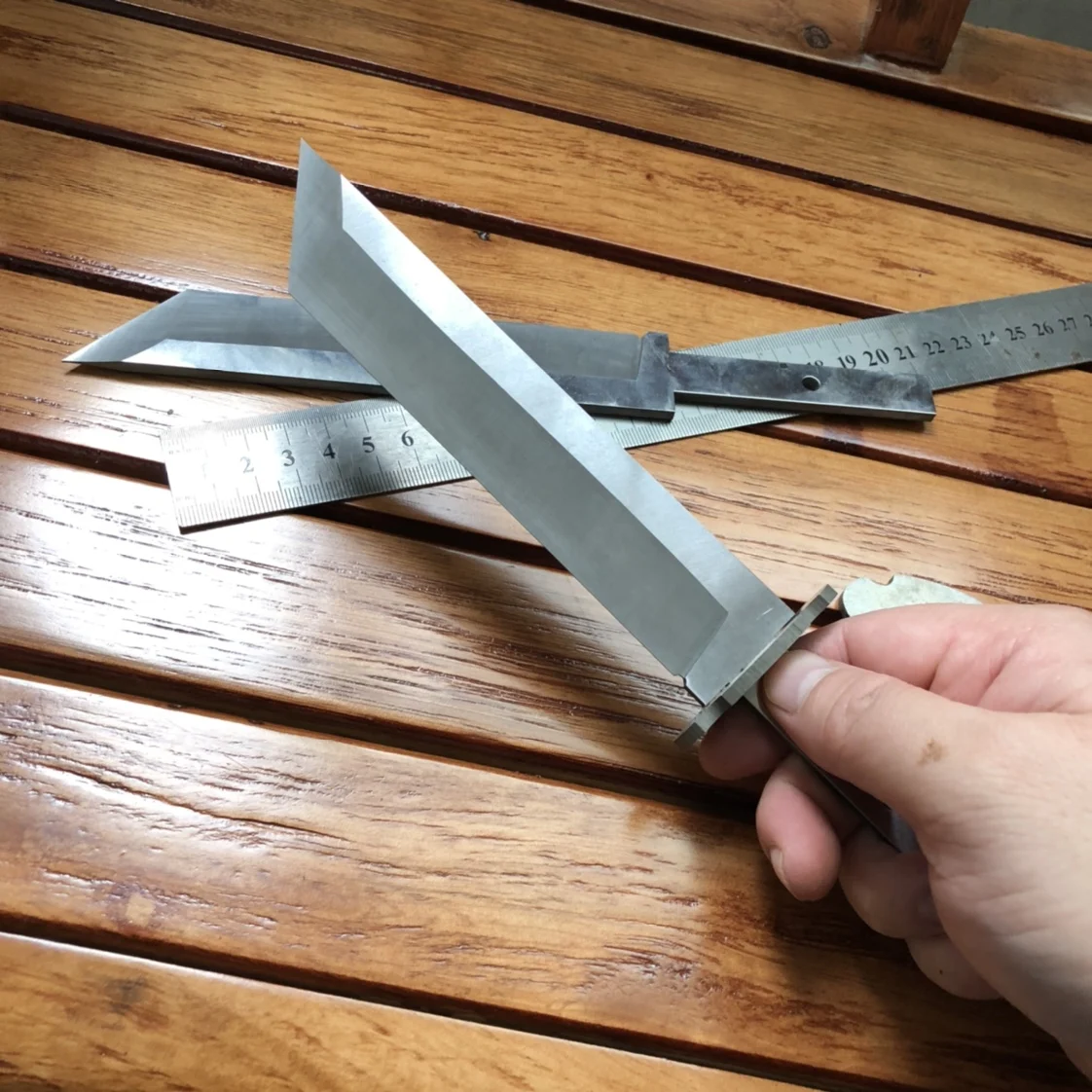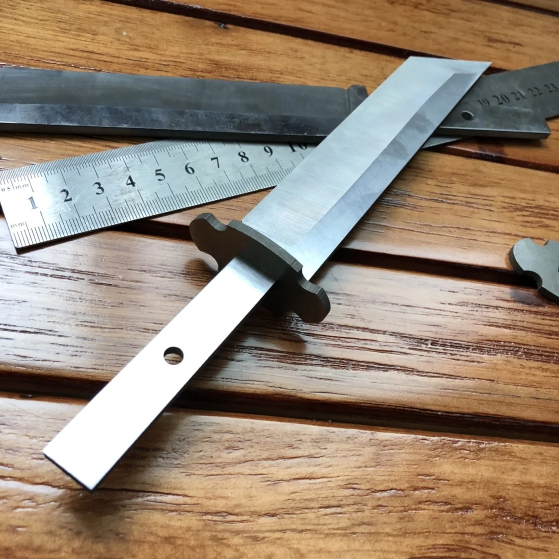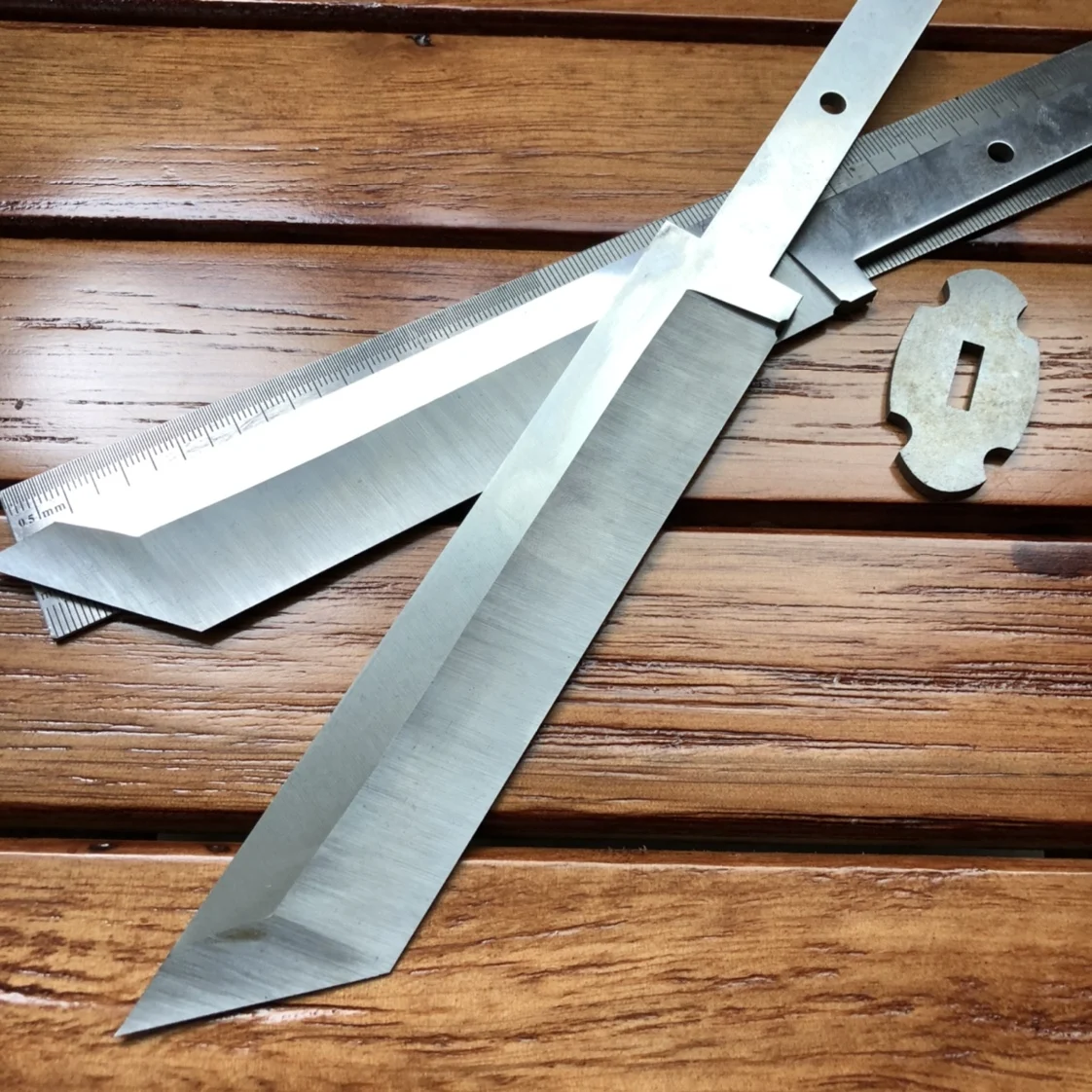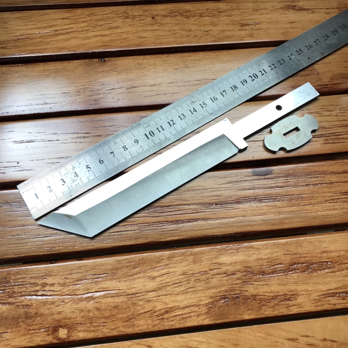 Полная длина 235 мм длина лезвия 155 мм длина лезвия 28 мм толщина лезвия 4,0 длина ручки 75 мм ширина 14 мм отверстие 5 мм Материал 440 нержавеющая сталь термообработка твердость 56-58.