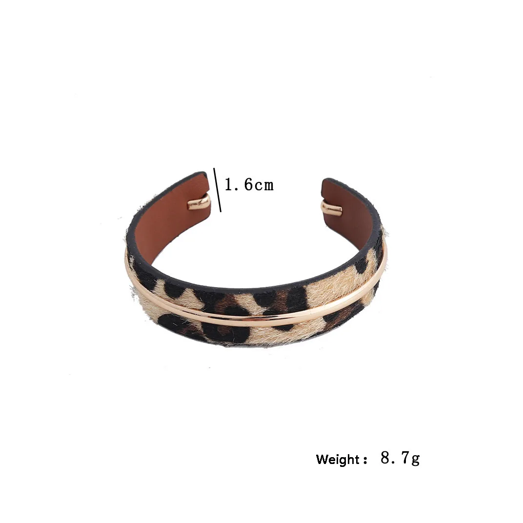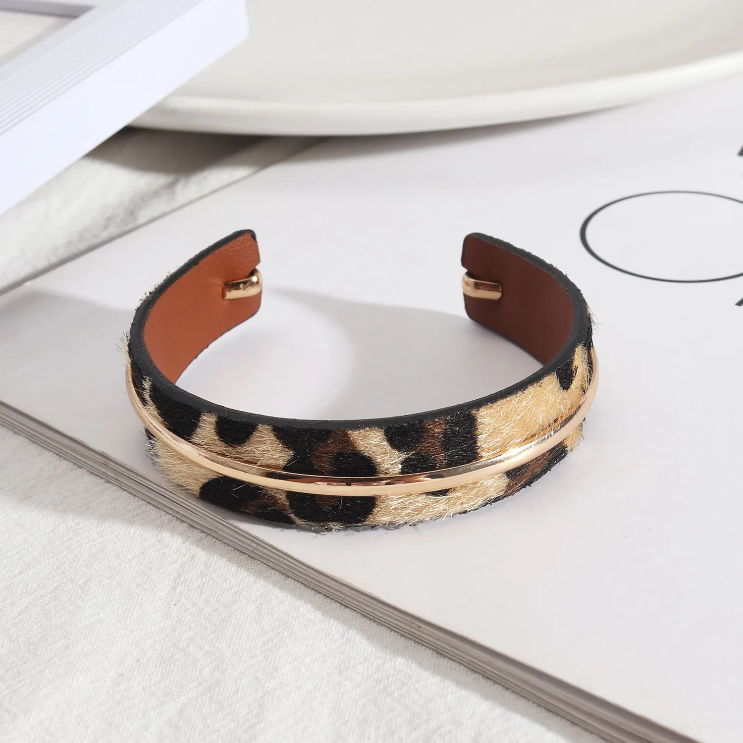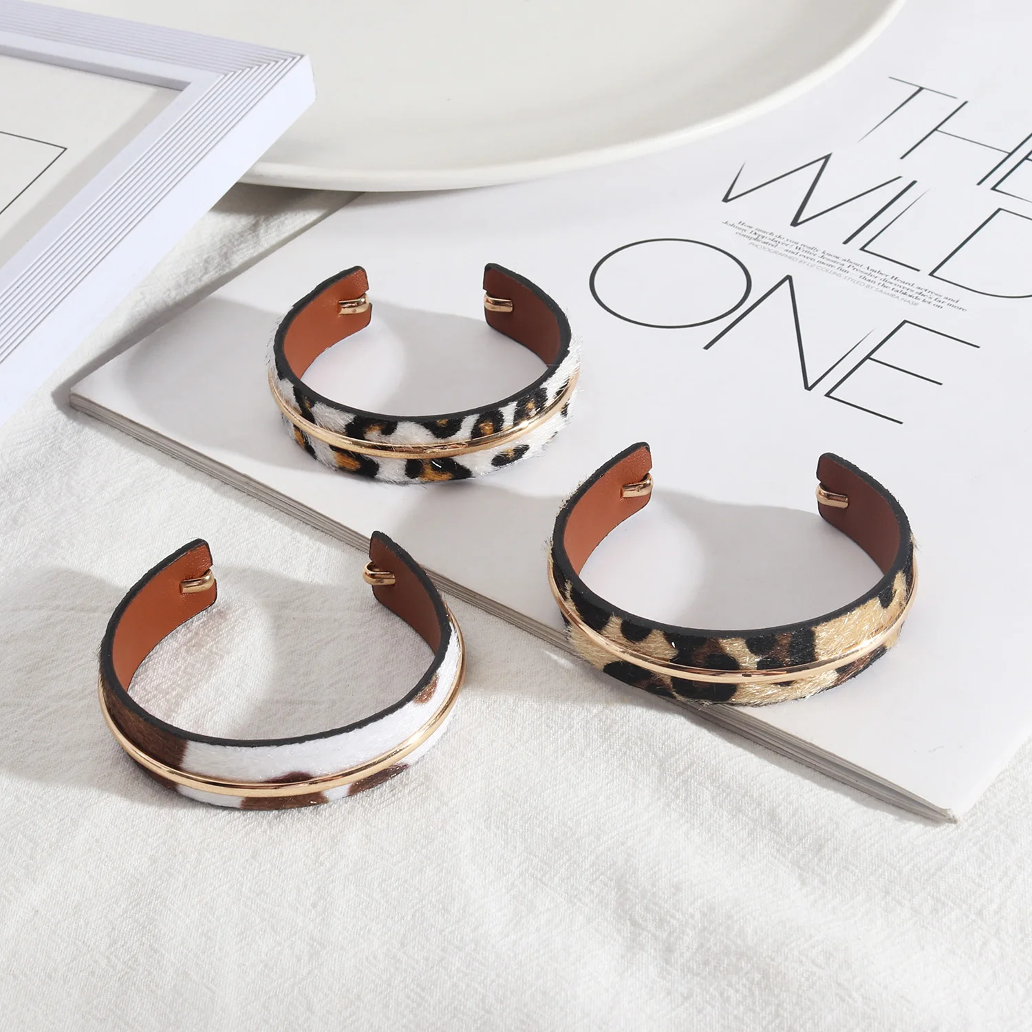 Custom Copper Ring Leopard Print Genuine Leather Pony Hair Cuff Bracelets for Women BOHO Vintage Personality Bangles Unique Gift
