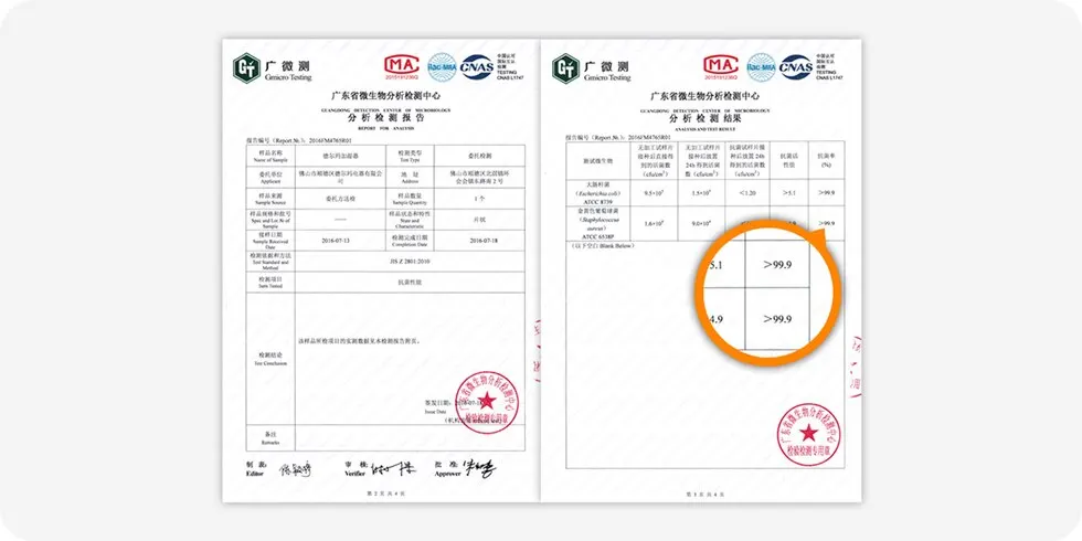 Laboratory test results showed that the tank effectively suppresses the reproduction of more than 99.9% bacteria.