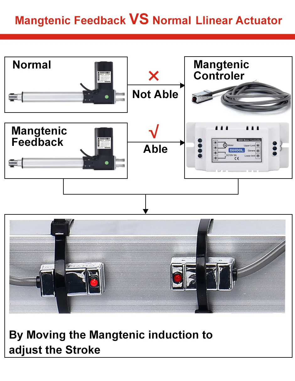 Отзывы ограничительных выключателей немного отличаются от датчика Холла или магнитного датчика. Отзывы ограничительных переключателей не предназначены для электрического линейного привода с позиционными отзывы, вместо этого они определяют точки запуска и остановки линейного привода.