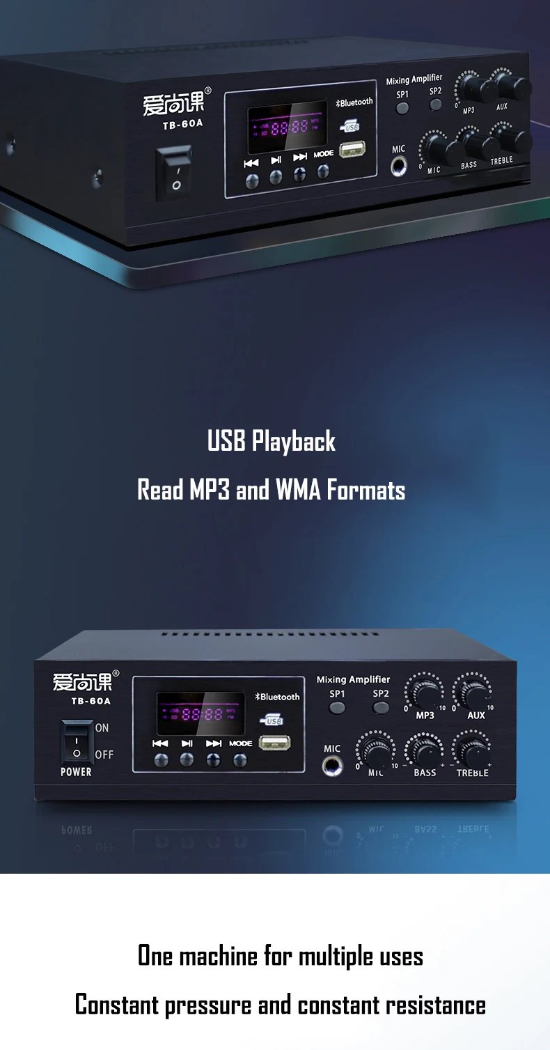TB 60A мини постоянное напряжение постоянного сопротивления усилитель мощности Bluetooth FM школа Молл общественное вещание фоновая музыка