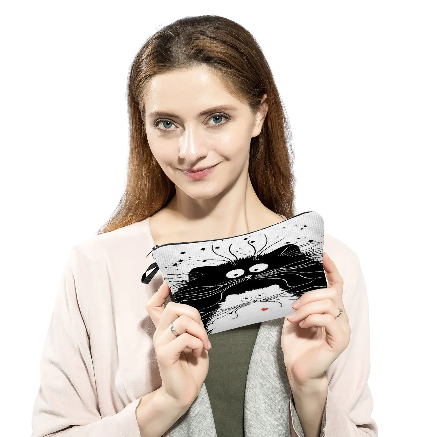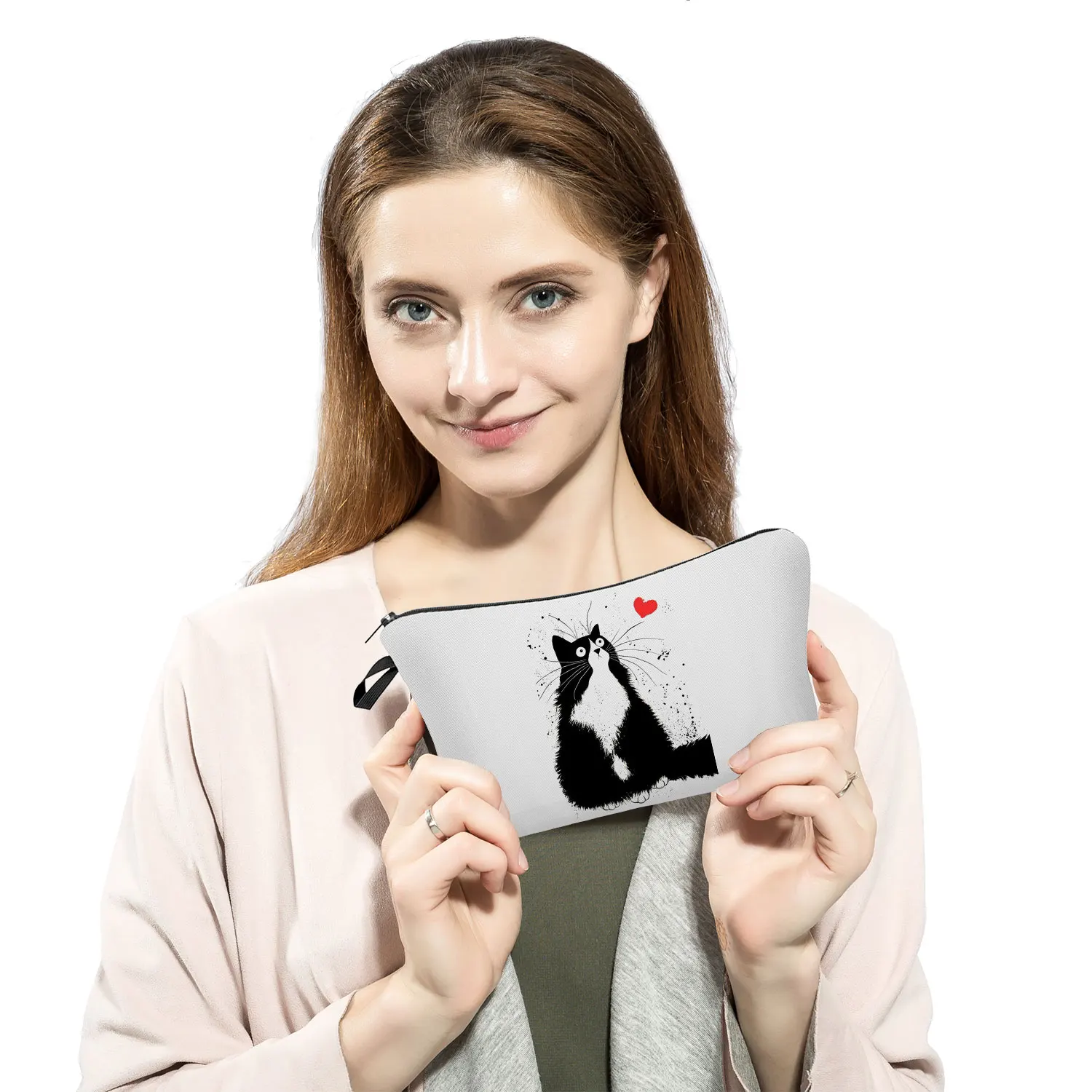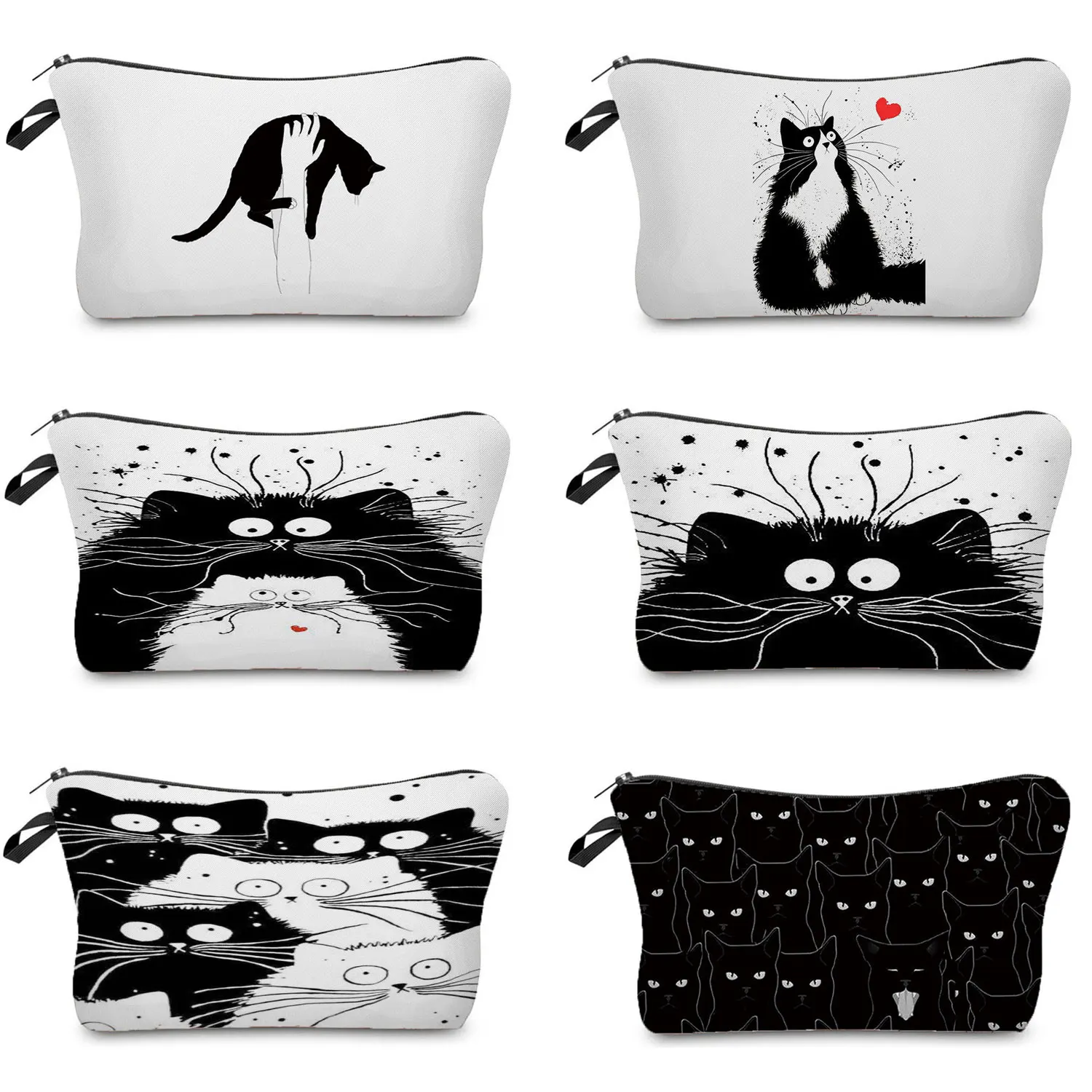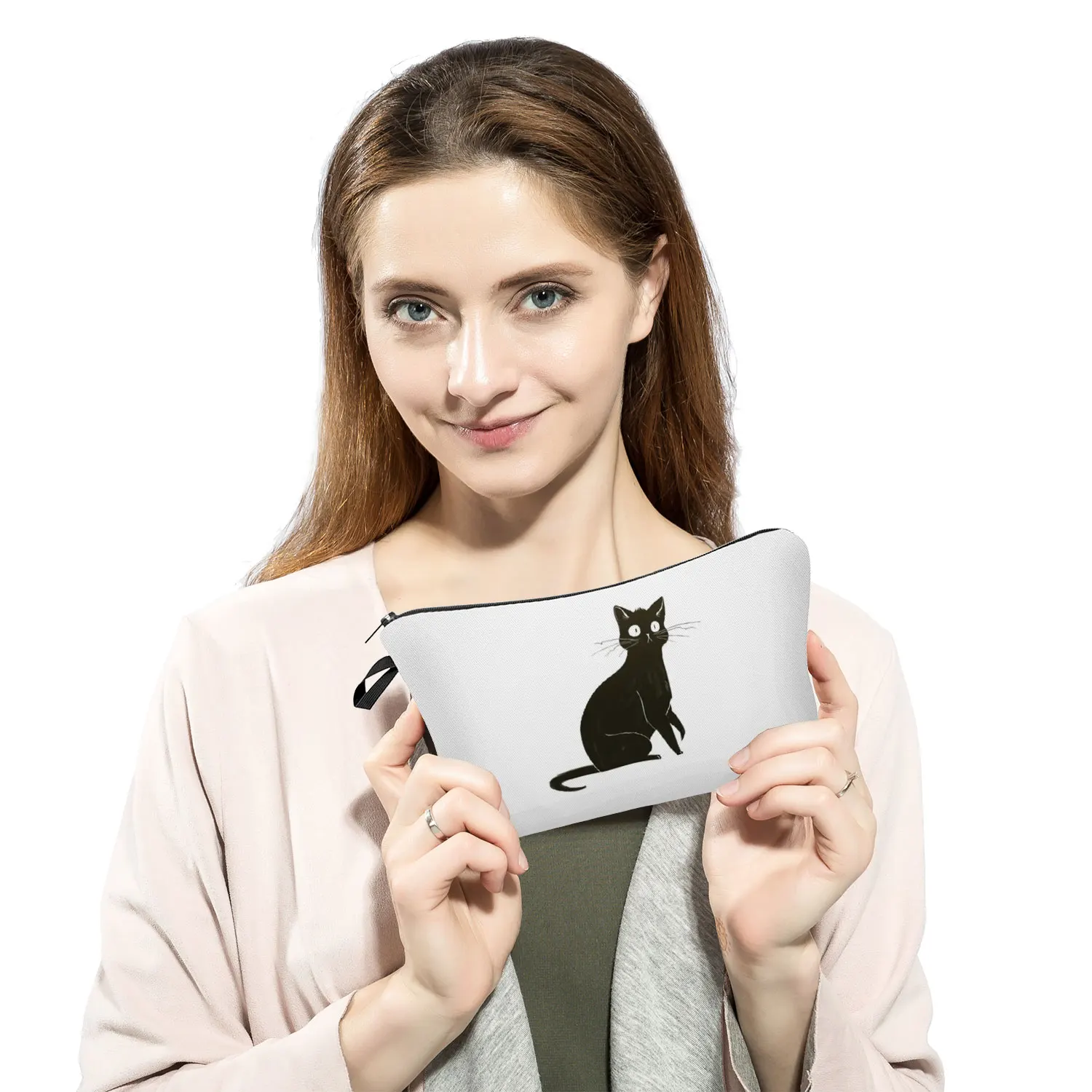 Горячая Распродажа, женские косметички с принтом черного кота, милые повседневные дорожные портативные сумки для хранения косметики, сумки для туалетных принадлежностей, Прямая поставка