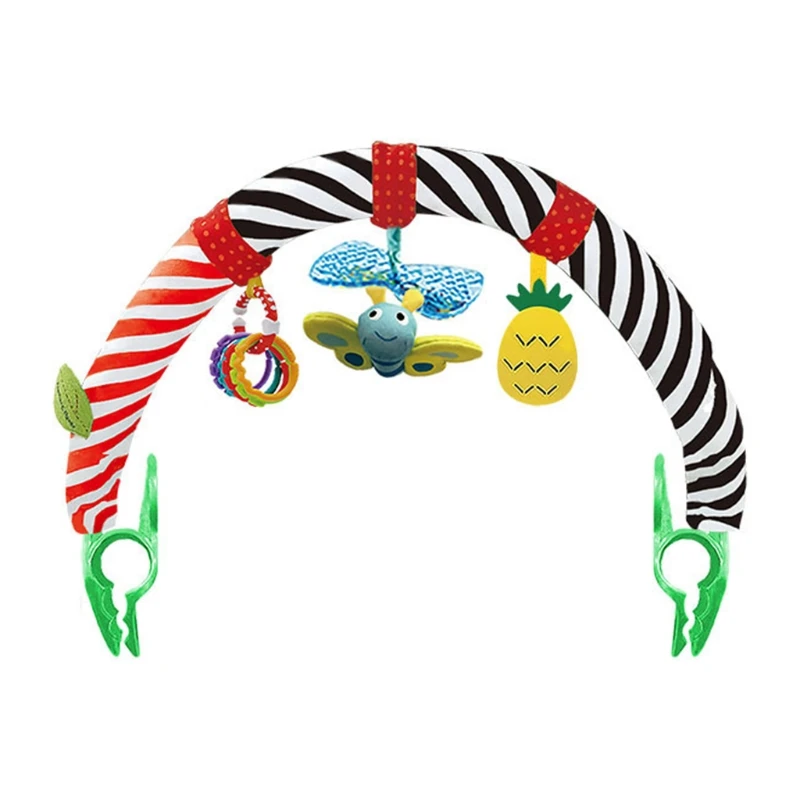 Интересные текстуры, каждая игрушка имеет забавные и привлекательные текстуры, которые очаровывают ребенка. Обеспечивает визуальную стимуляцию и стимулирует фокус. Занятия, множество различных детских подвесных игрушек предлагают удовольствие, развивая мелкую моторику во время прогулки с ребенком. Три Висячие мягкие игрушки обеспечивают много активности для ребенка, чтобы чувствовать и захватывать, включая мягкий ананас и медовую пчелу, красочную радугу с захватывающим движением погремушки и звуком, держит ребенка занят и родителей счастливым, во время прогулки, для удобства на открытом воздухе.