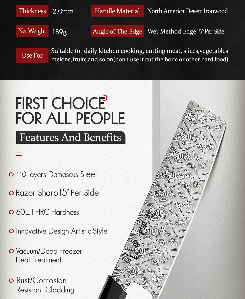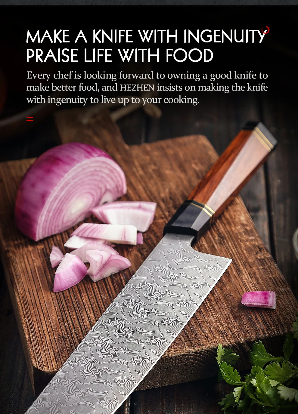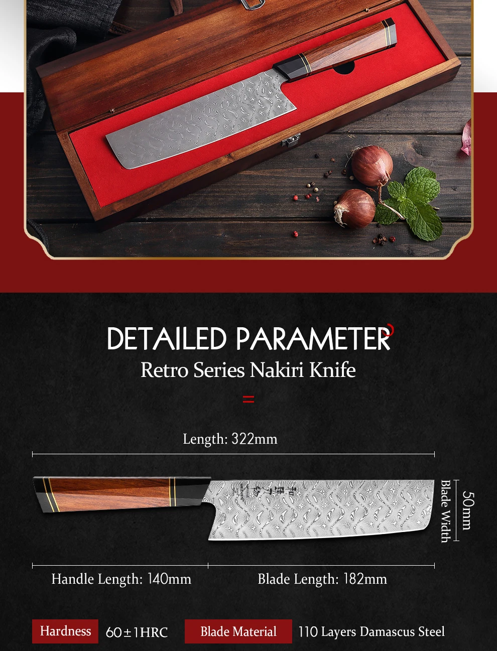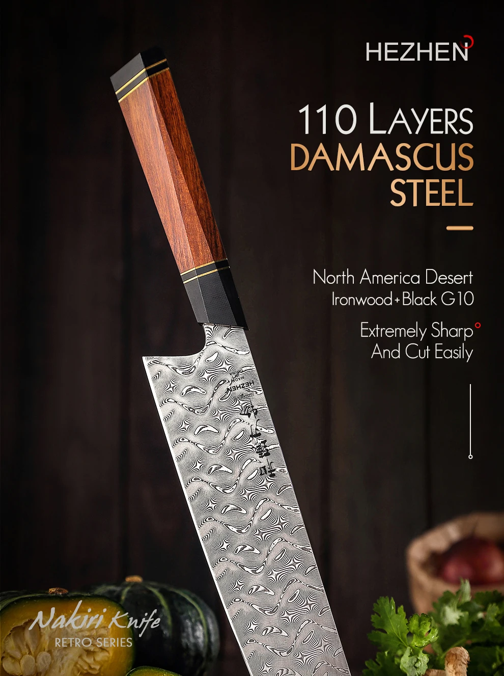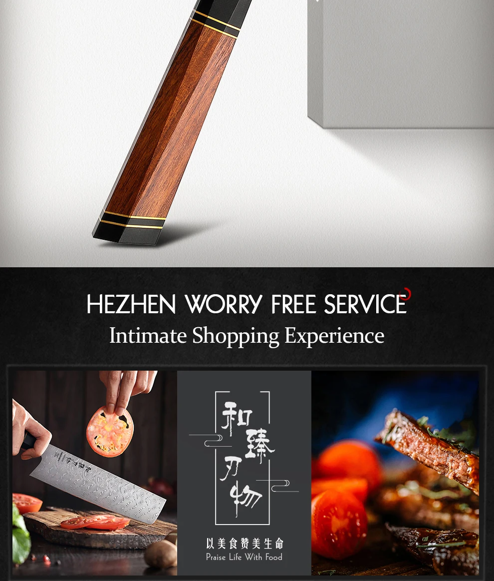 HEZHEN 182 мм слои Дамасская сталь ножи накири